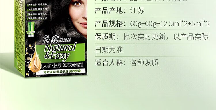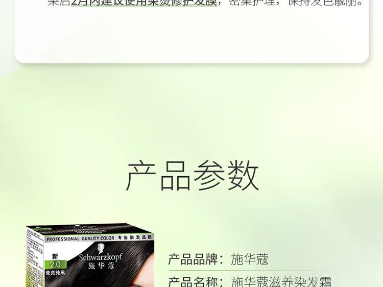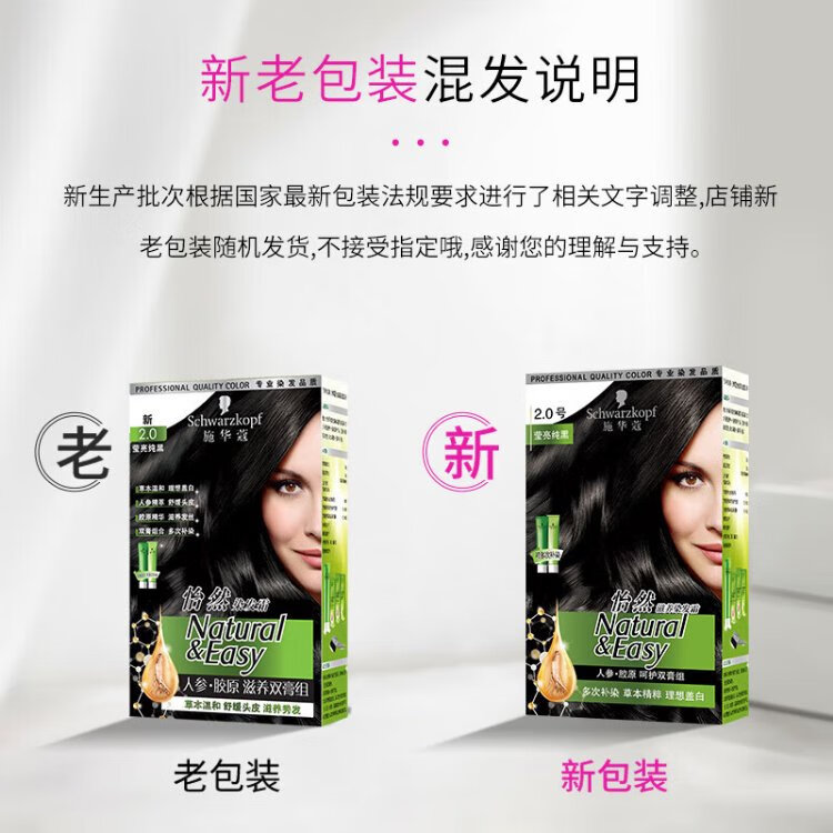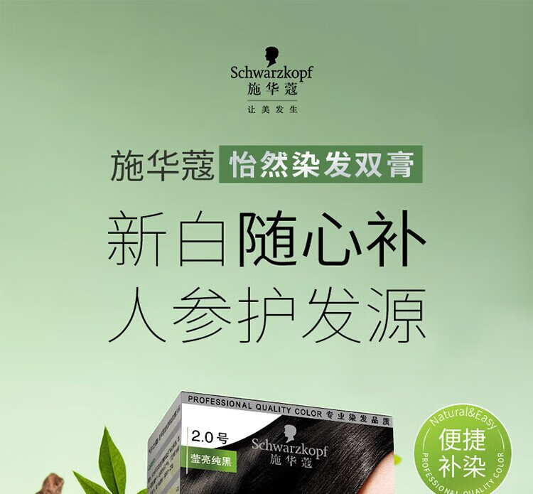 Schwarzkopf Yiran Nourishing Hair Color Cream 2.0 Brilliant Pure Black Hair Dye Cream Plant Ginseng Multiple Whitening Replenishment