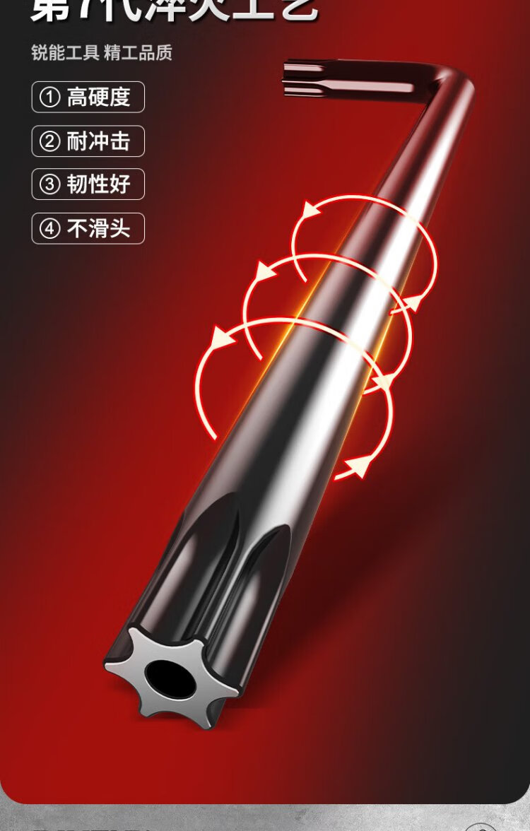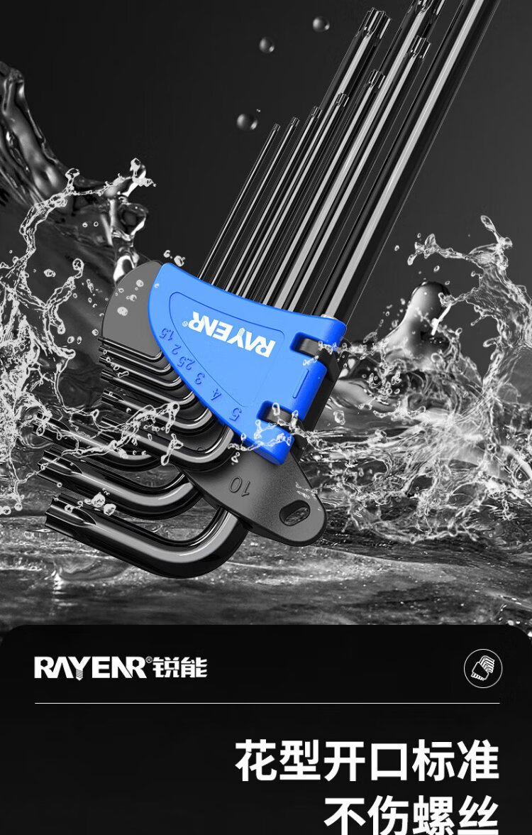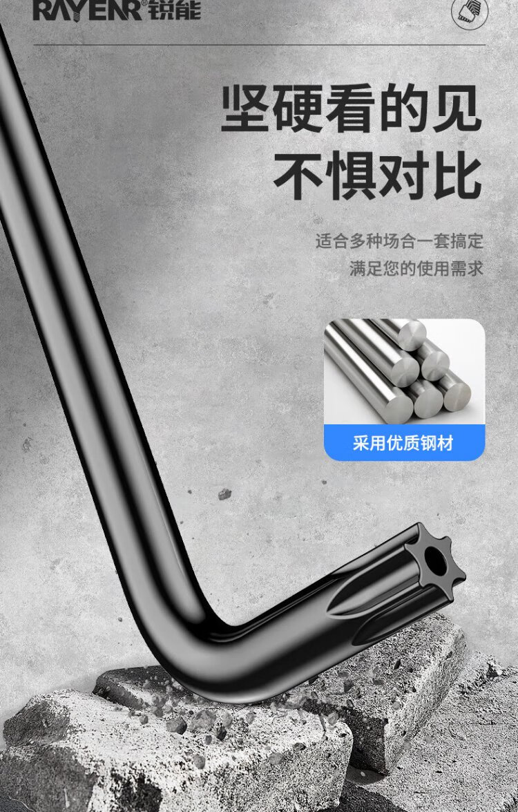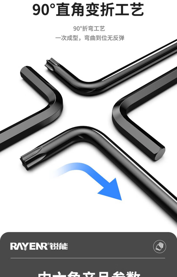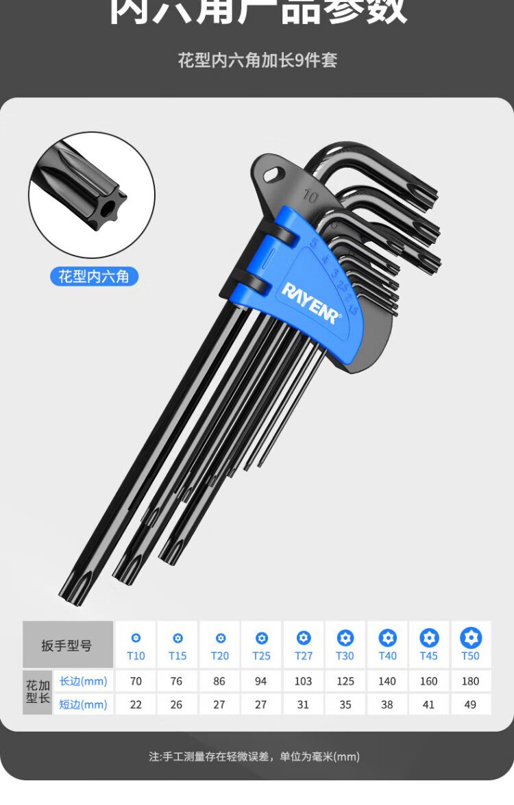 Ruineng Torx Allen Wrench 9-piece set, special long rice-shaped star-shaped hexagonal screwdriver with middle hole