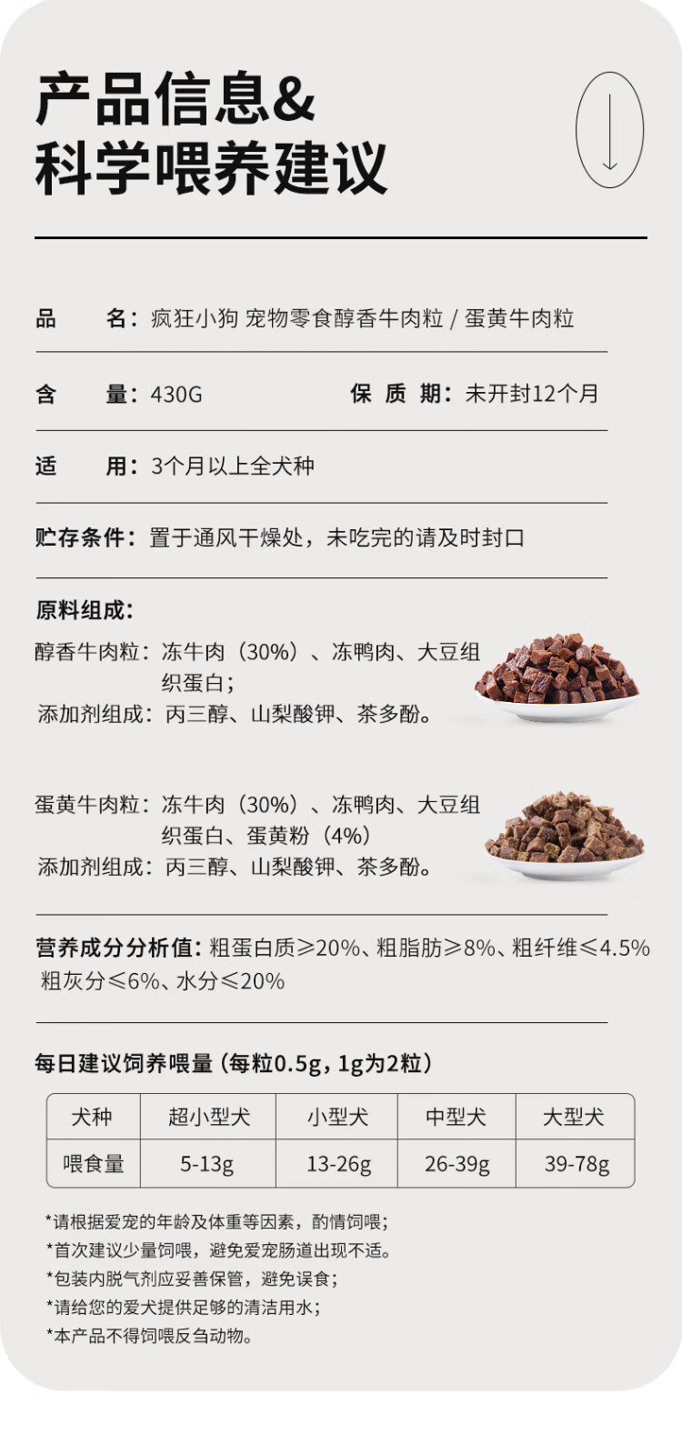 Crazy Puppy Pet Dog Snacks Chicken Beef Grained Rice for Adults and Puppies General Nutritious Rice Reward Egg Yolk Beef Grained 430g