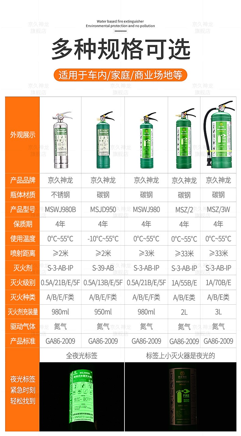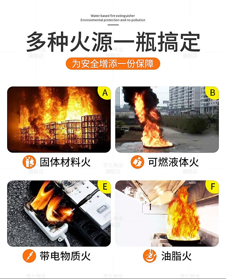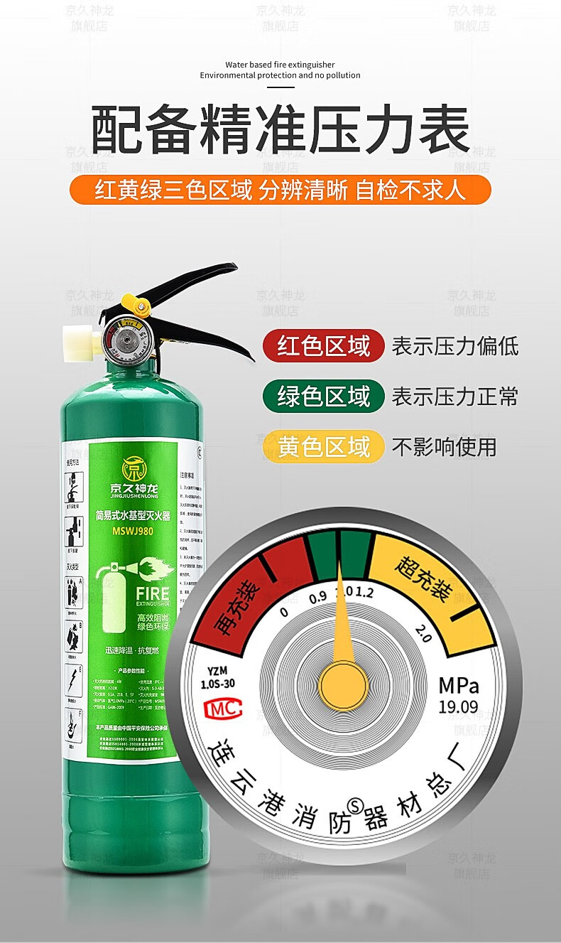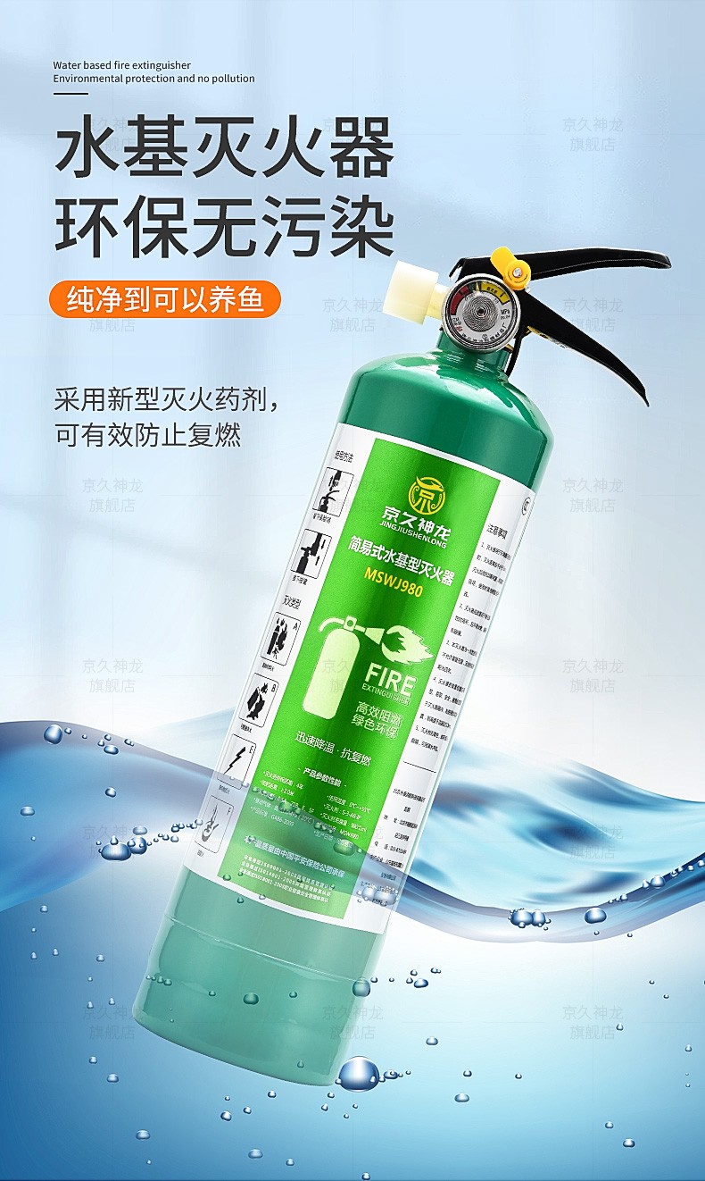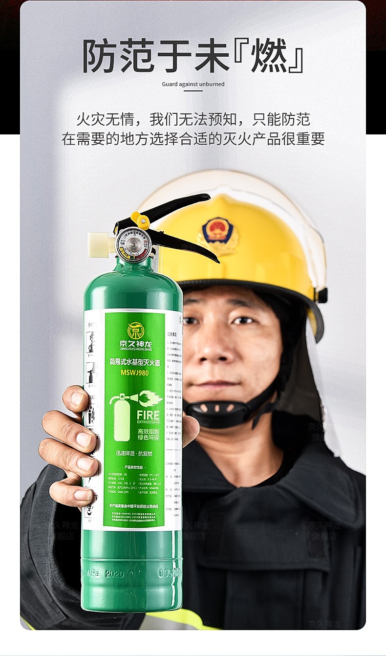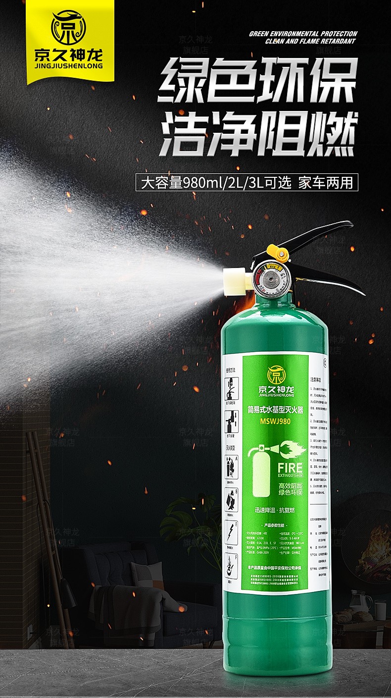 Water-based fire extinguisher, green and environmentally friendly, vehicle, household, commercial, hotel, factory, fire extinguisher, water mist water system fire extinguisher, simple portable type 980ml2L3L6L 950ml stainless steel fire extinguisher