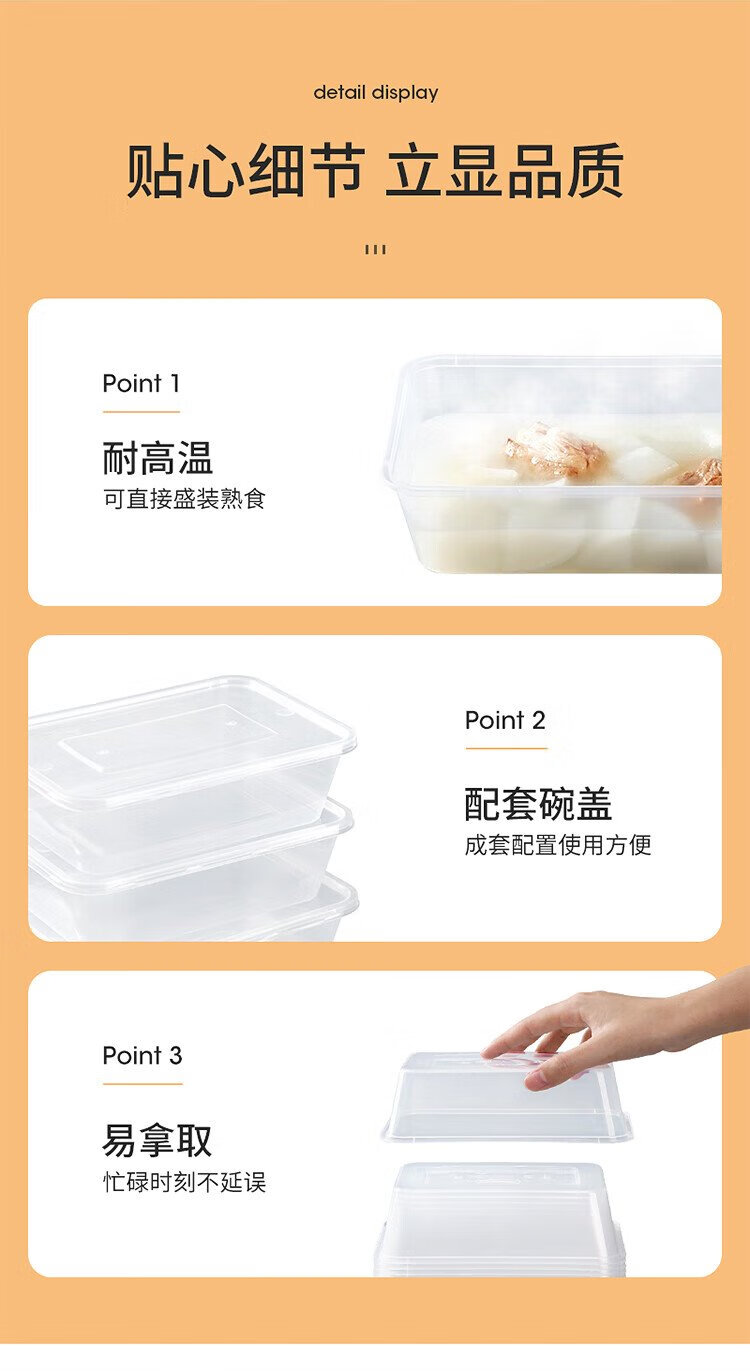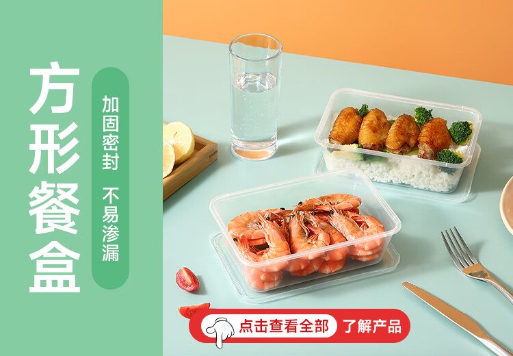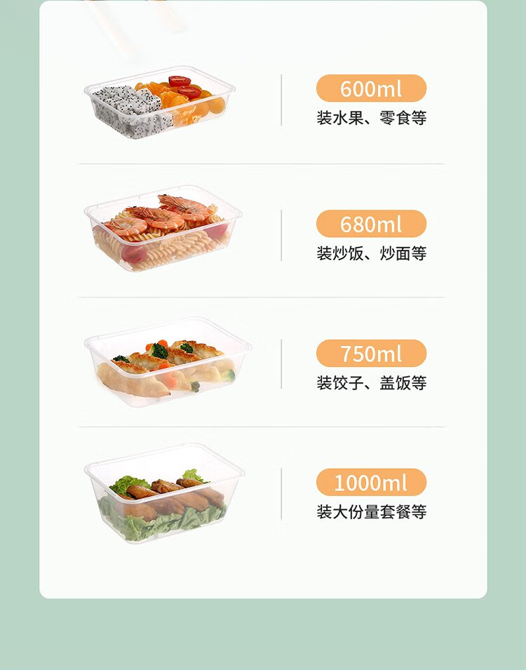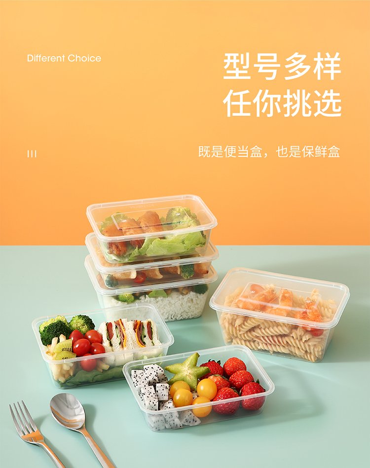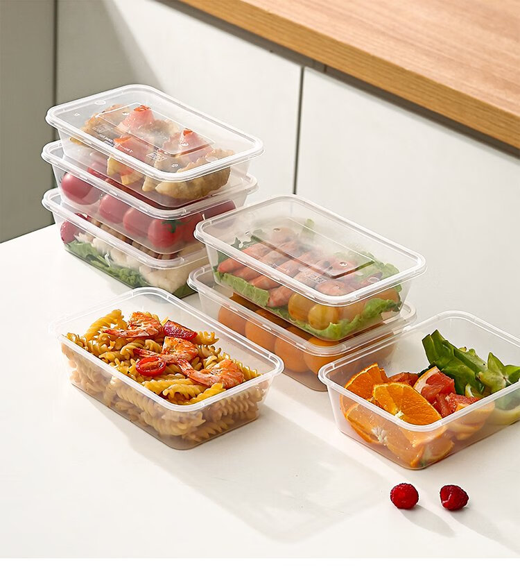 Meiya Disposable Lunch Box Square 750ml*20 Sets for Food Fast Food Packaging Picnic Box with Lid Bowl Microwaveable