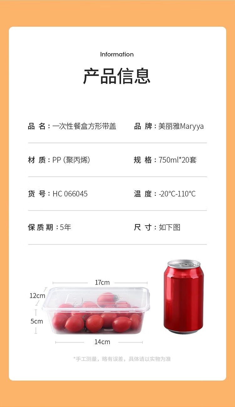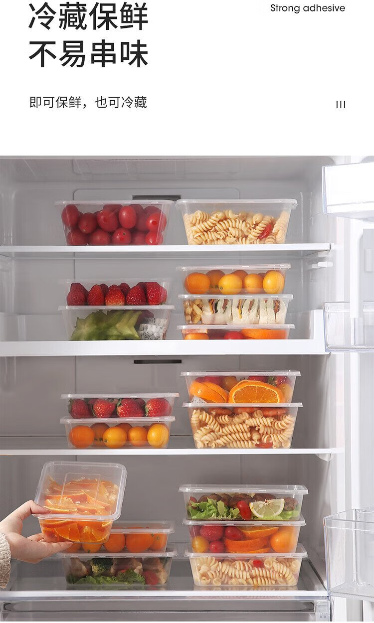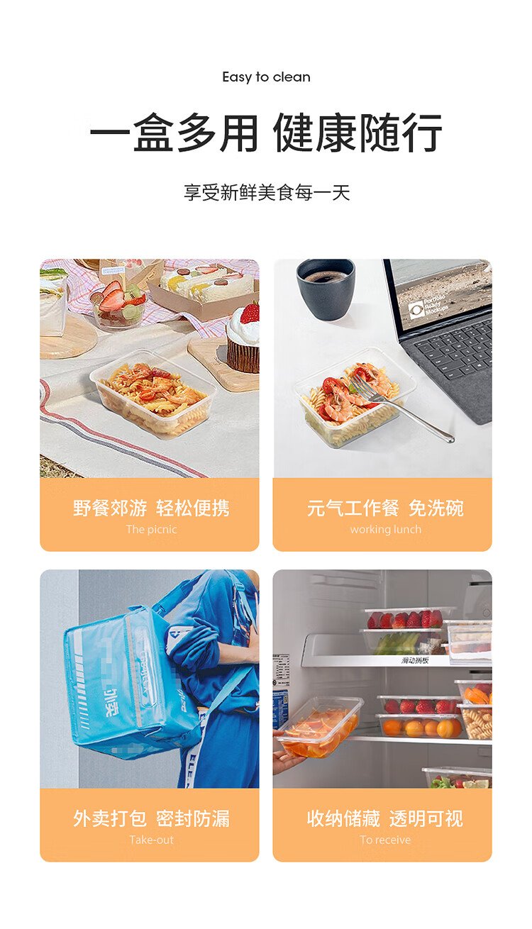 Meiya Disposable Lunch Box Square 750ml*20 Sets for Food Fast Food Packaging Picnic Box with Lid Bowl Microwaveable