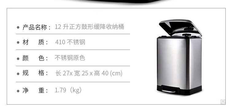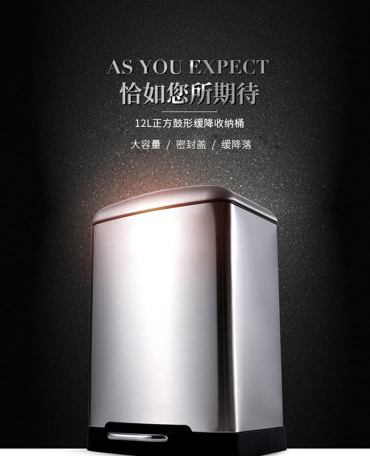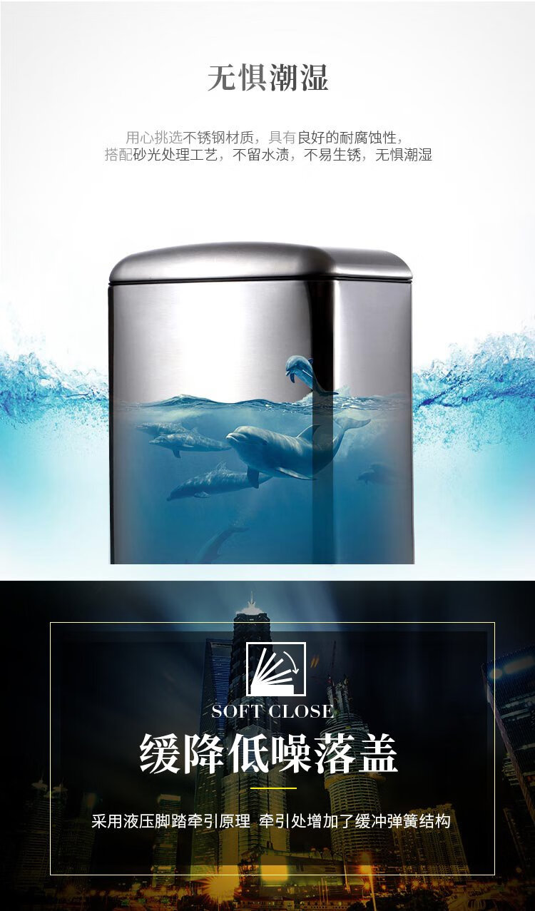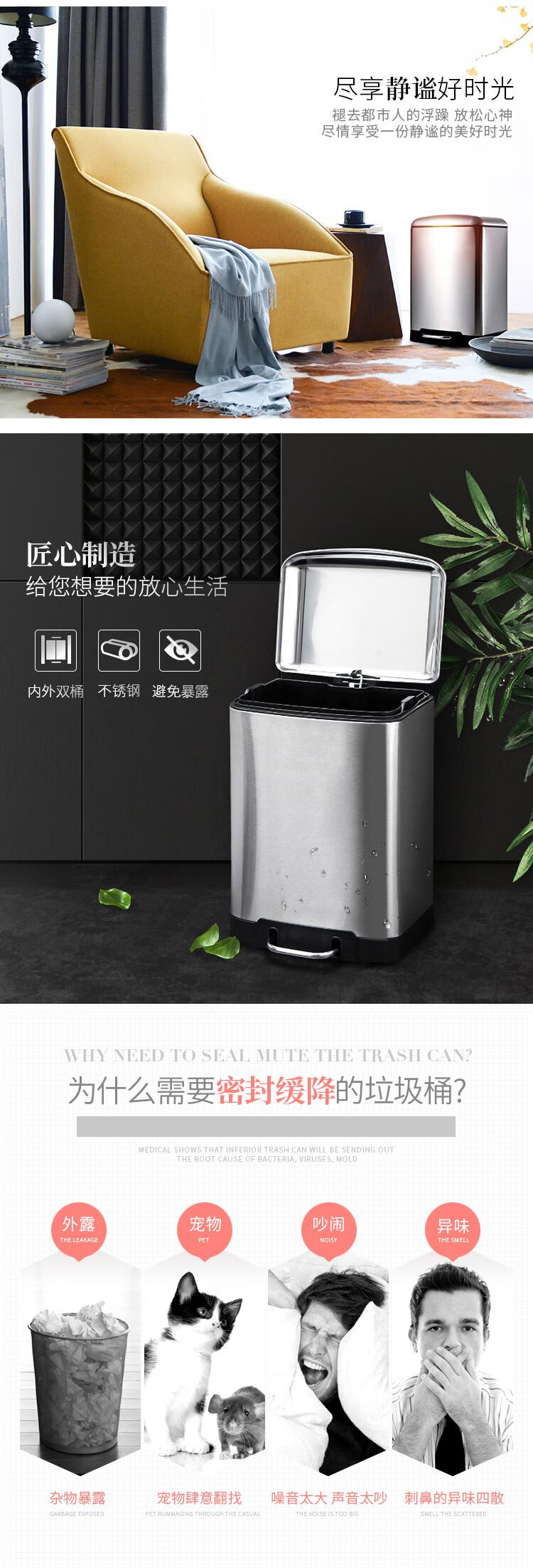 Ou Runzhe trash can pedal open lid 12L drum type stainless steel kitchen living room bedroom bathroom household double barrel mute