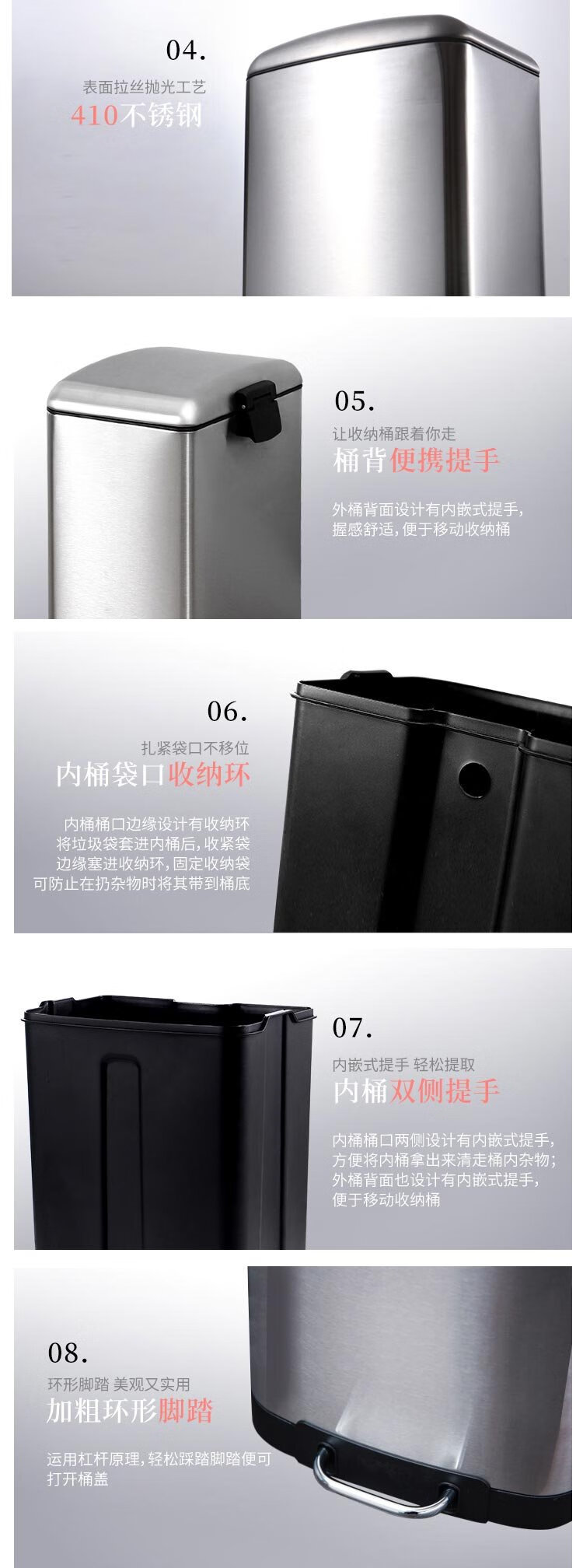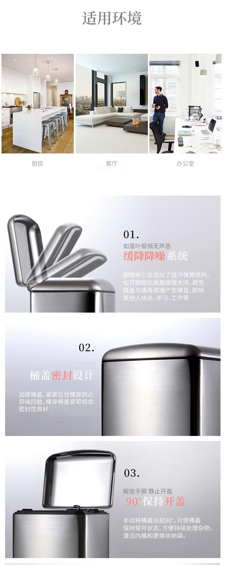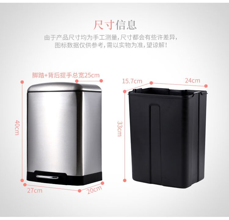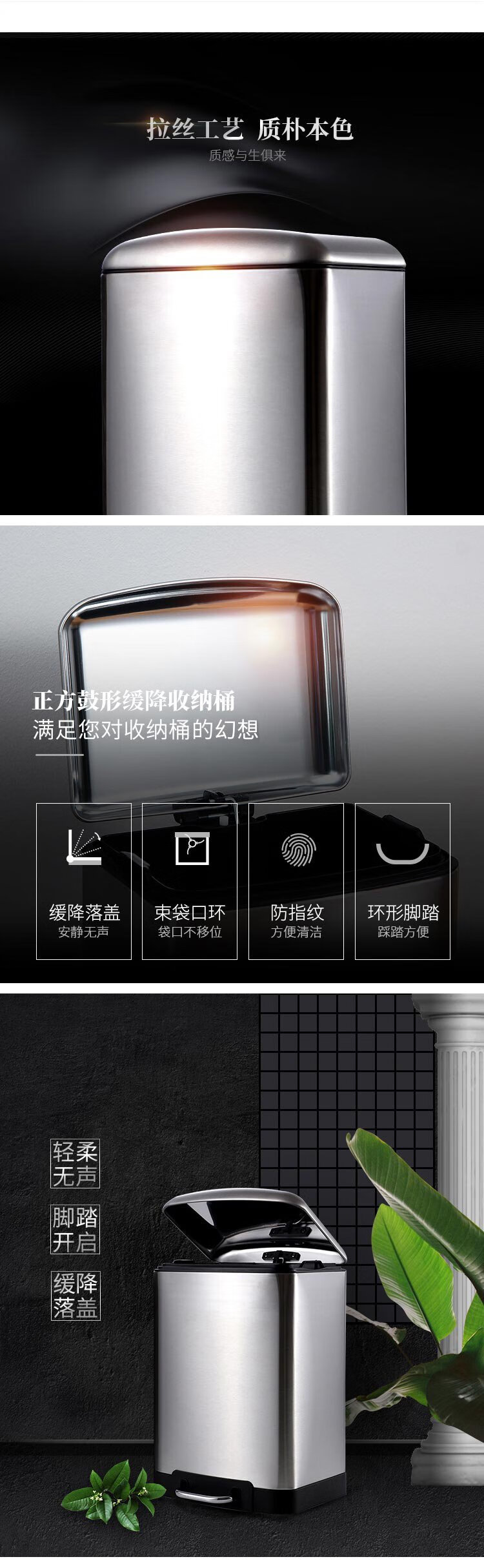 Ou Runzhe trash can pedal open lid 12L drum type stainless steel kitchen living room bedroom bathroom household double barrel mute