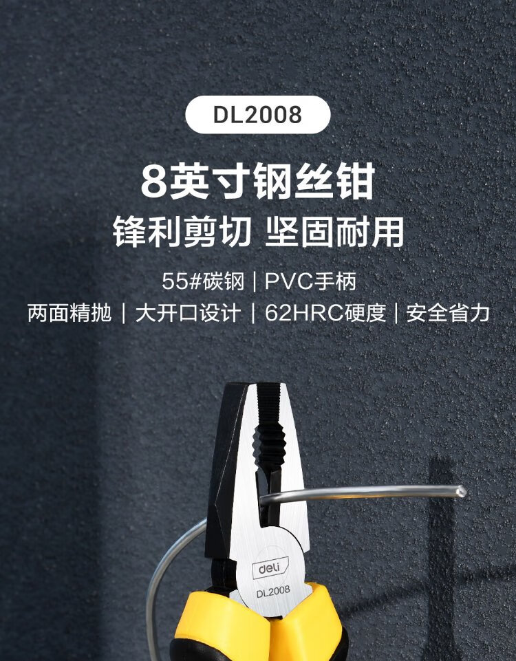 Deli two-color plastic handle wire pliers vise multi-functional wire cutter wire cutter vise pliers electrician clamp 8 inches