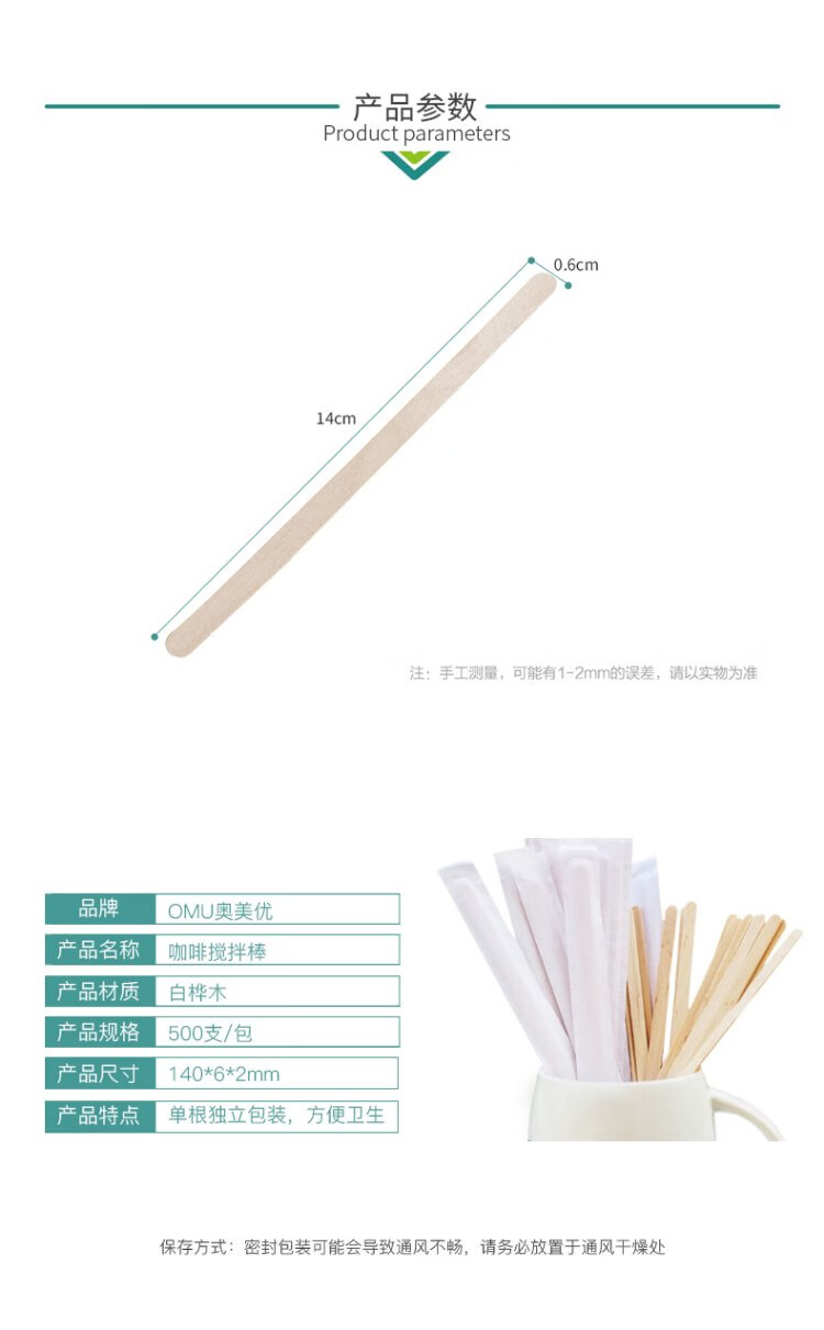 Ogilvy Disposable Coffee Stirring Stick Wooden Coffee Stirring Stick 14cm 200 Count Boxed Individually Packaged