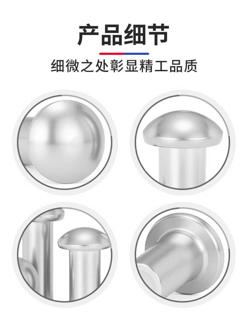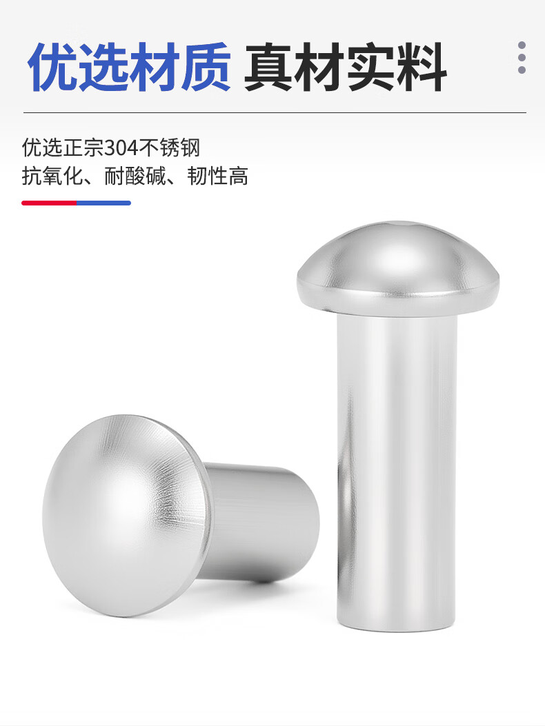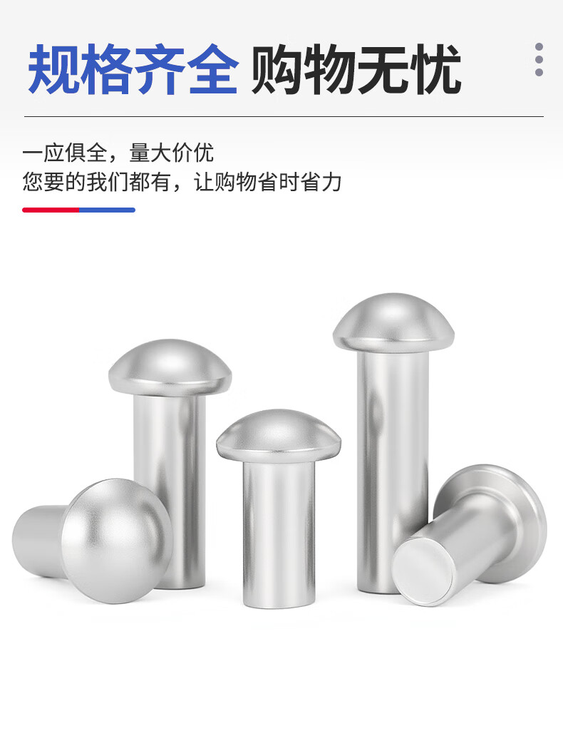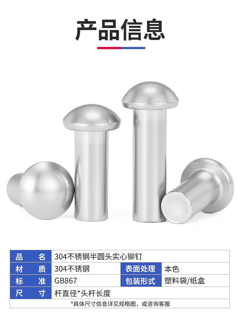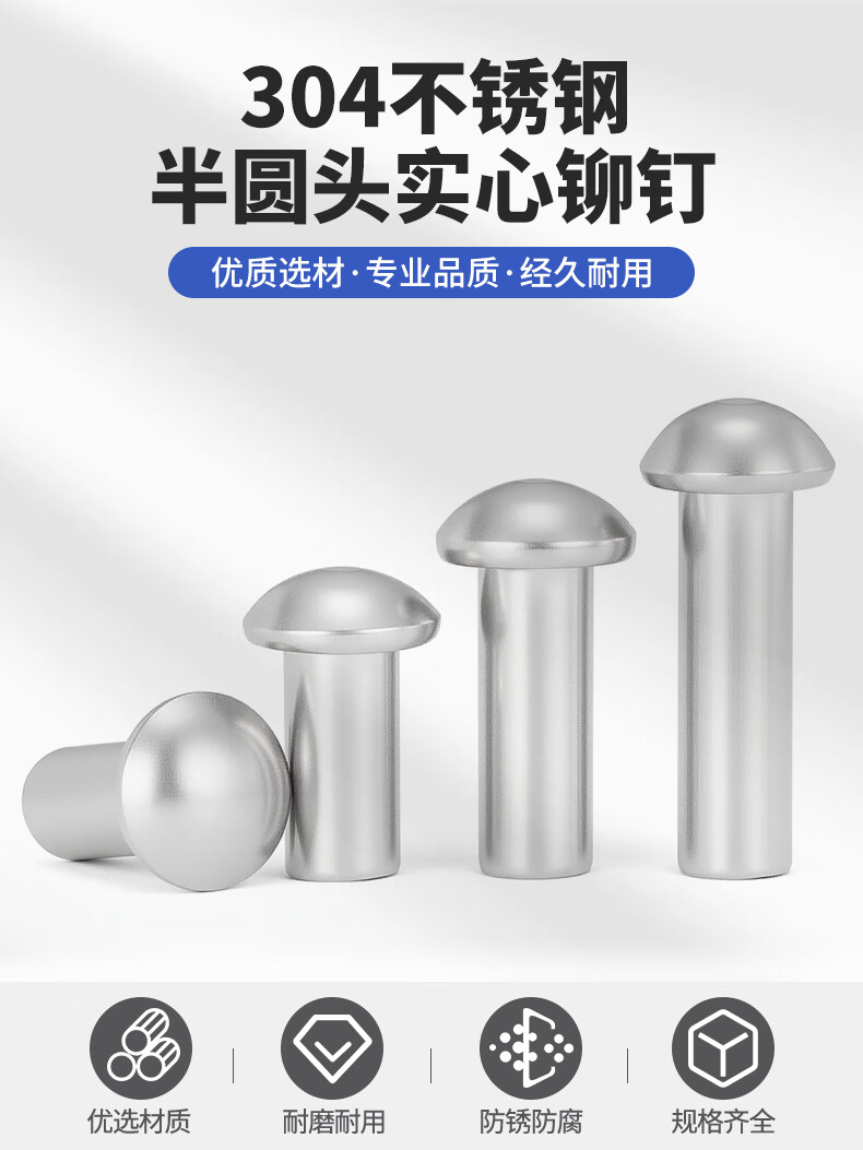 Jinggong m2-m6 304 stainless steel semi-round head solid rivet round head rivet knock stainless steel rivet GB867 6x10 10 pieces