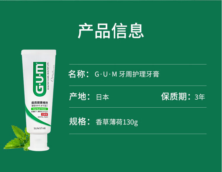 G U M Kangzhijia Japan imported low foaming toothpaste gum periodontal oral care vanilla mint flavor 130g