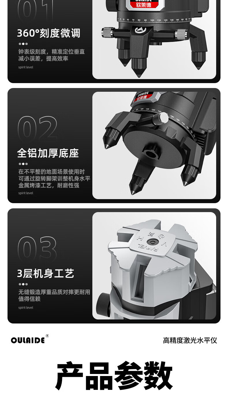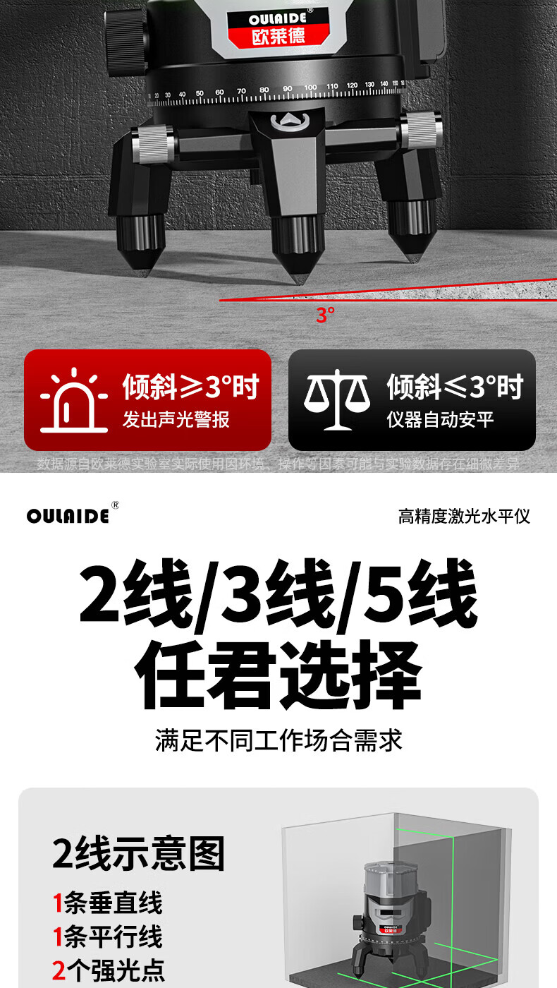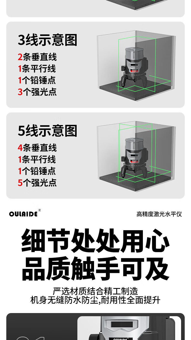 OLED green light level laser infrared level high-precision blue light level ruler line instrument smart core super green light 2-line high-precision touch screen model