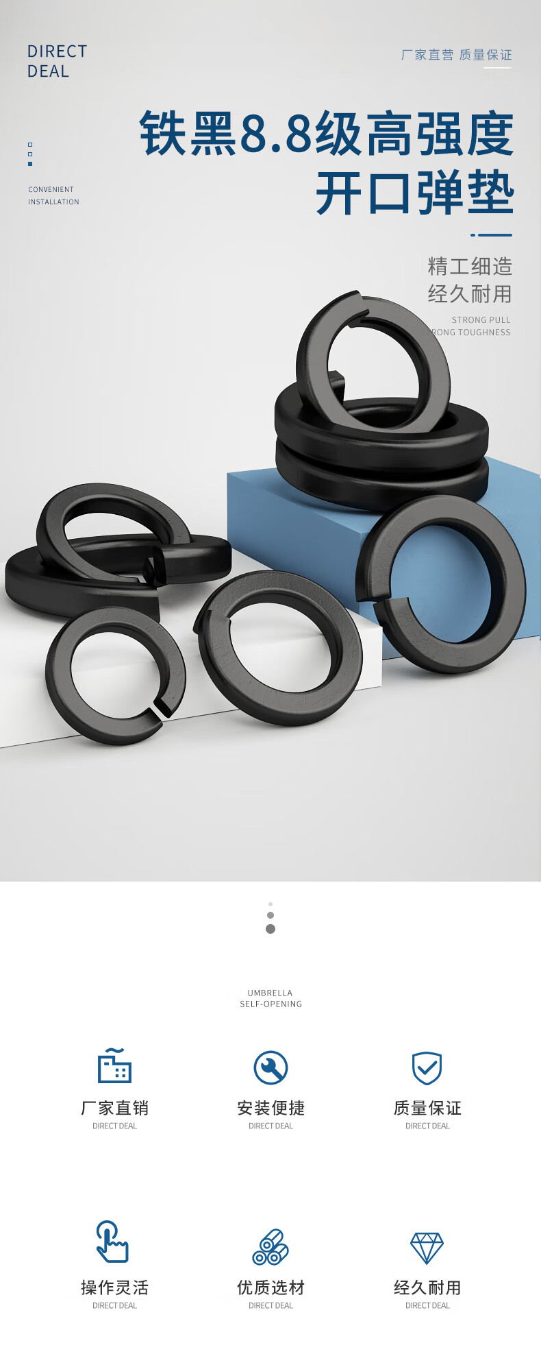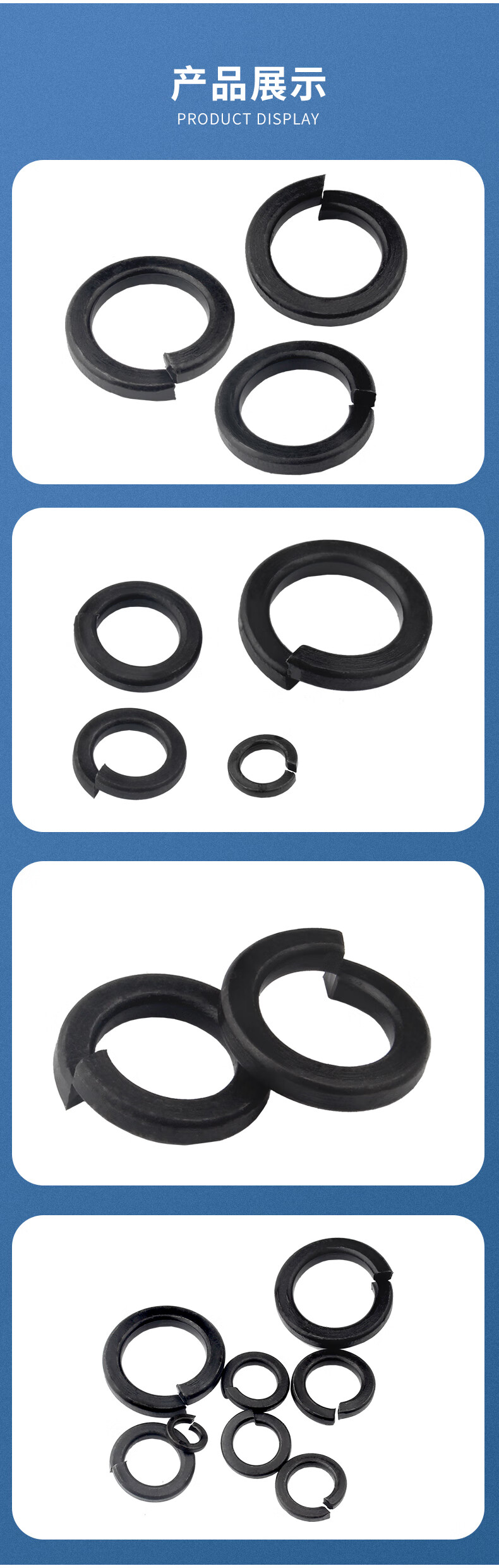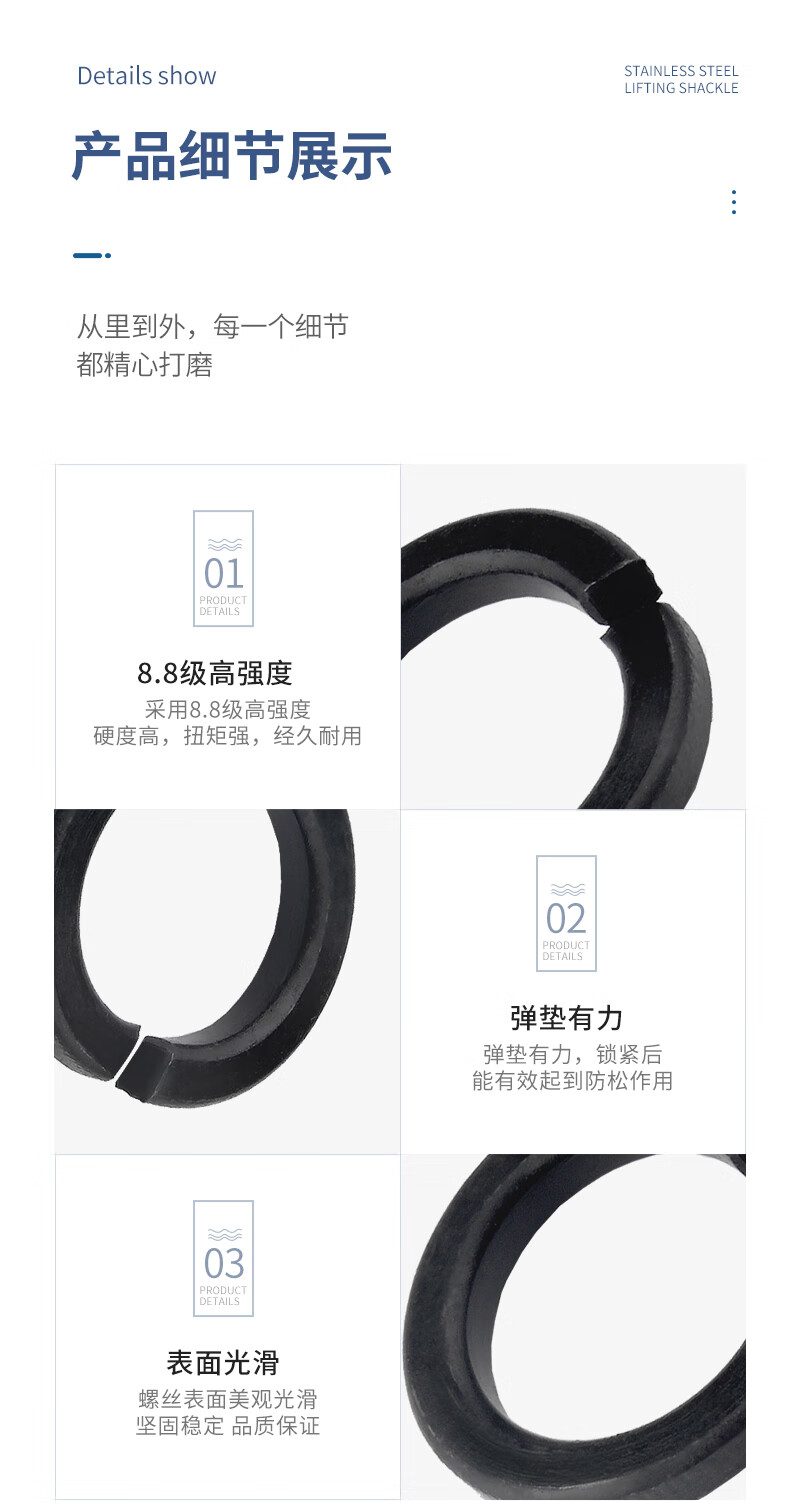 Guwanji 8.8 grade iron black thickened open elastic washer widened spring washer flat washer elastic washer flat washer national standard M16 50 pieces 8.8 grade black