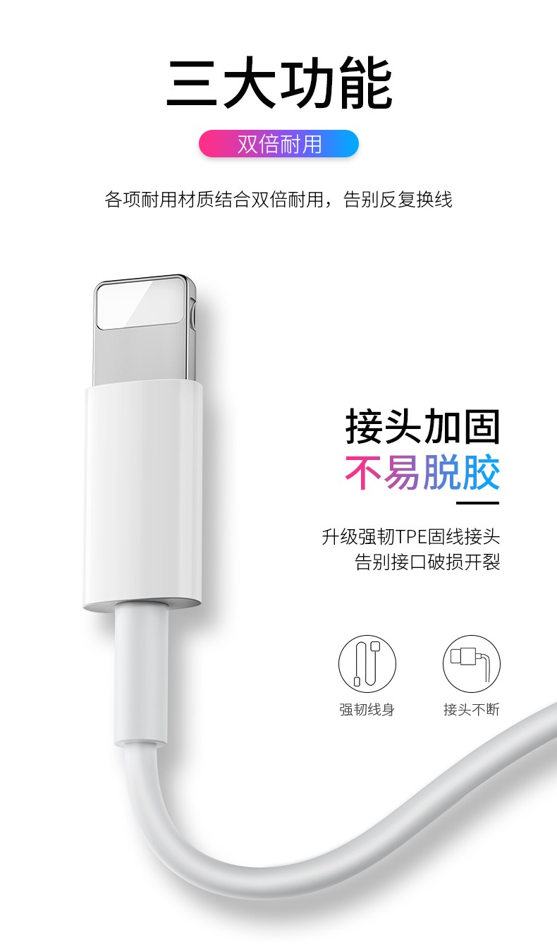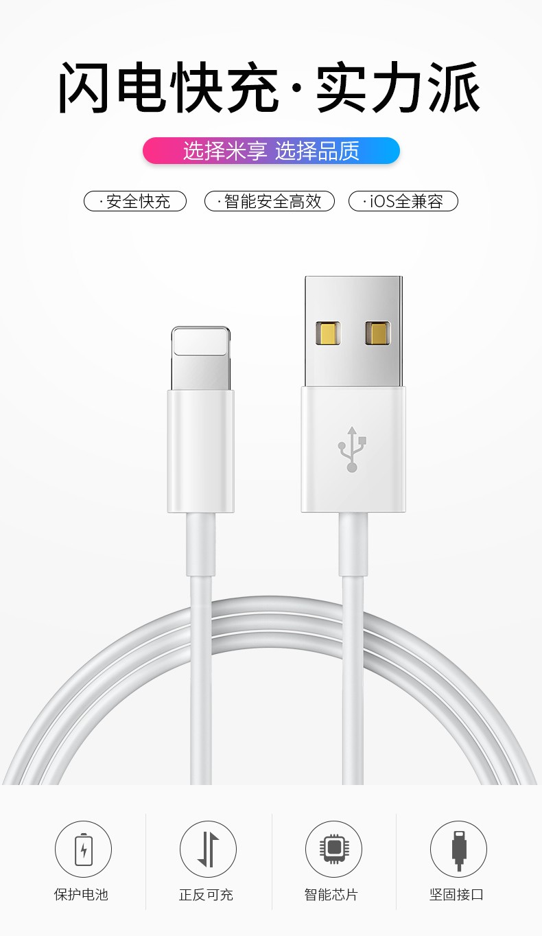 Mixiang Apple charging cable for live broadcast, extended iPhone data cable, computer screen live broadcast companion, ultra-long fast charging charger cable transmission connection, suitable for Apple 8-14 USB models | 3 meters single cable