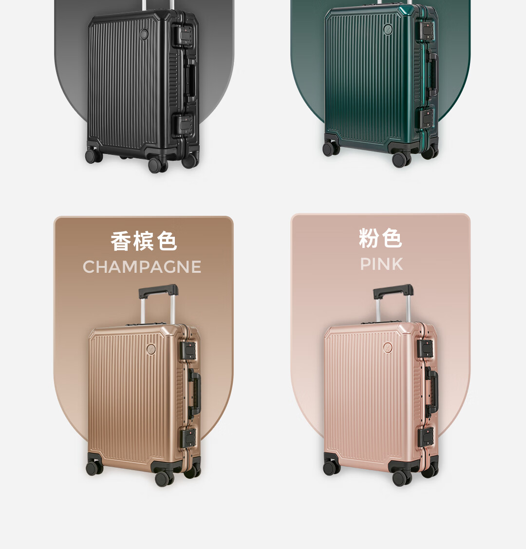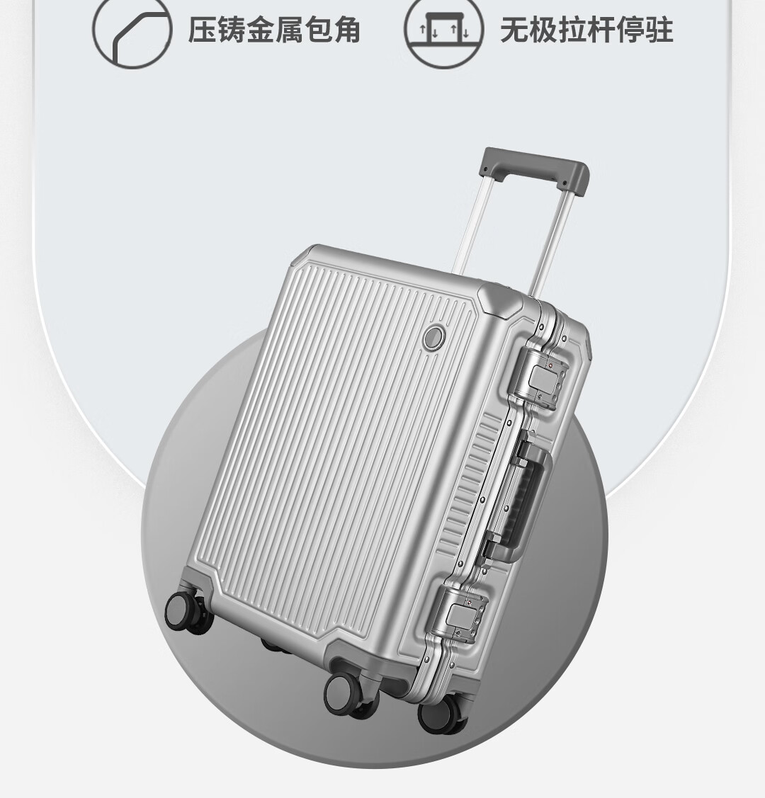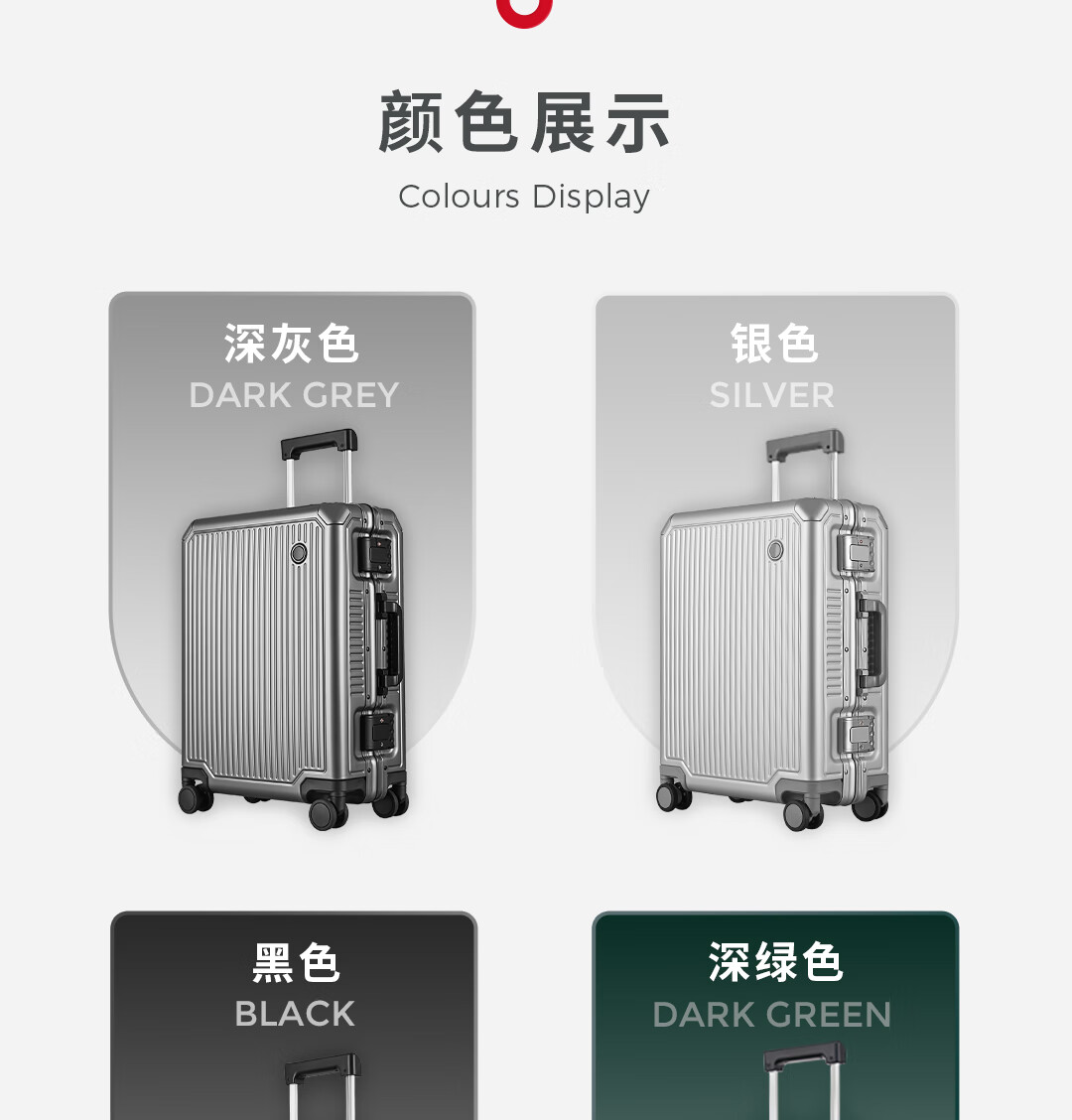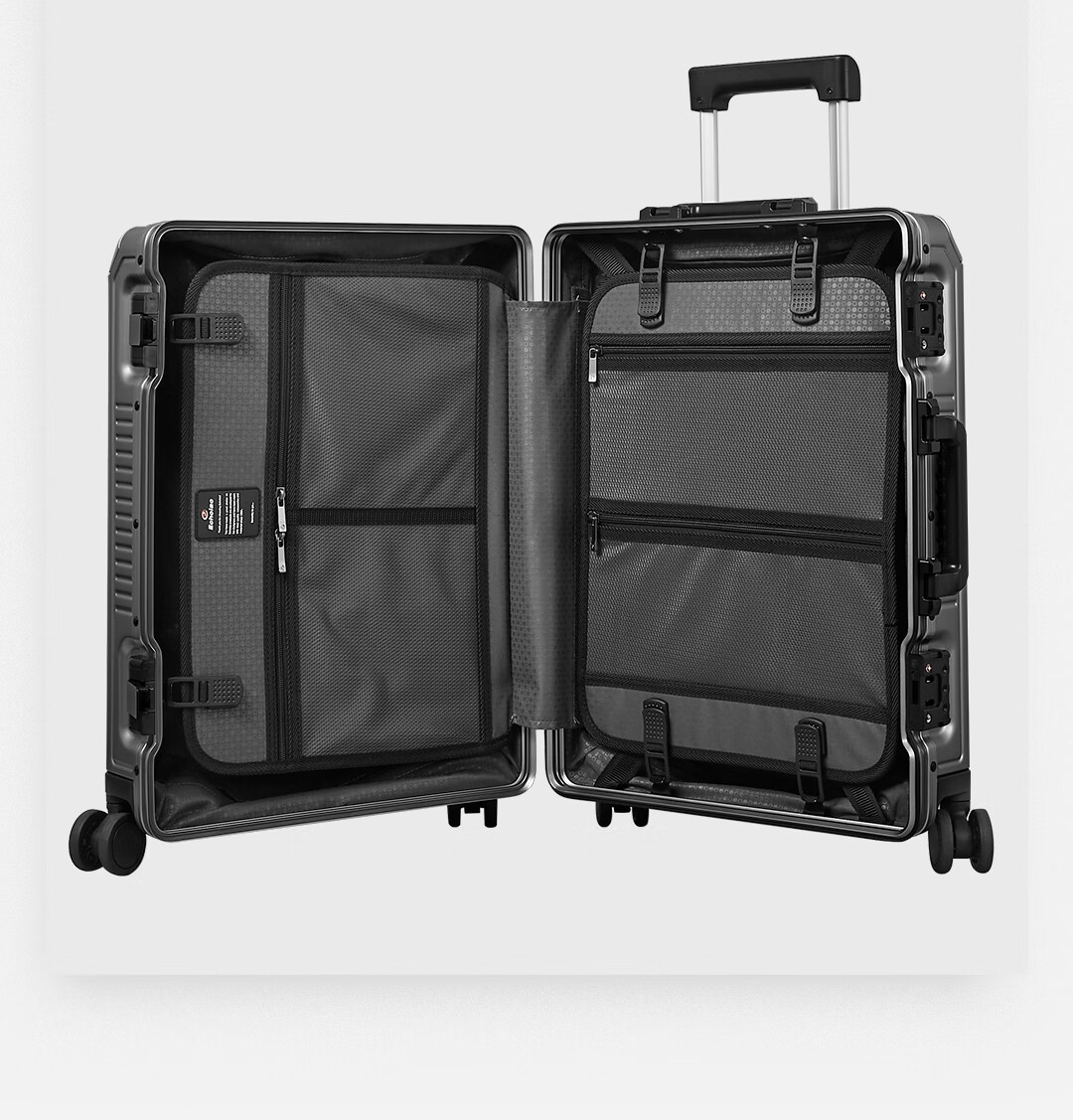 Echolac aluminum-magnesium alloy stepless trolley suitcase, full metal shell, high-end suitcase, anti-collision and impact-resistant CTA148, dark gray, aluminum-magnesium alloy, 20 inches