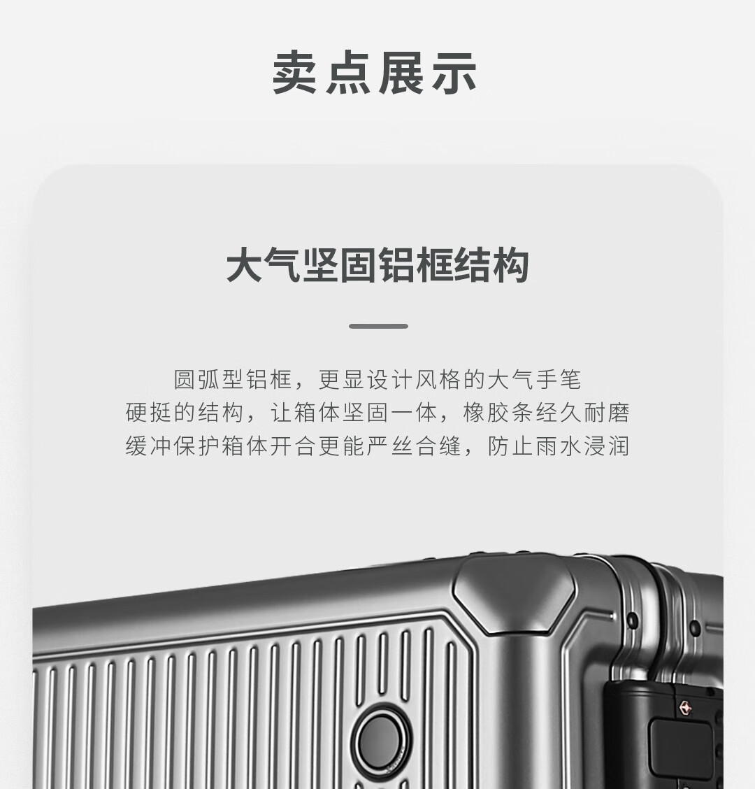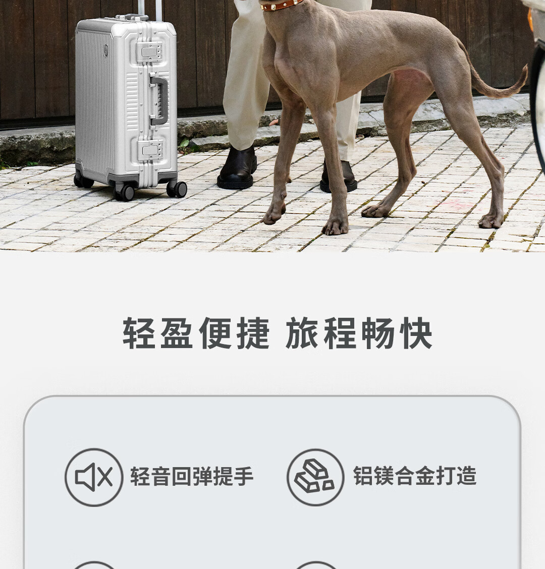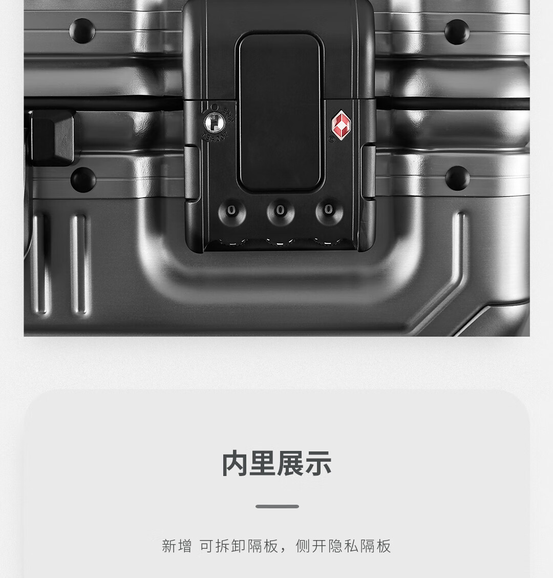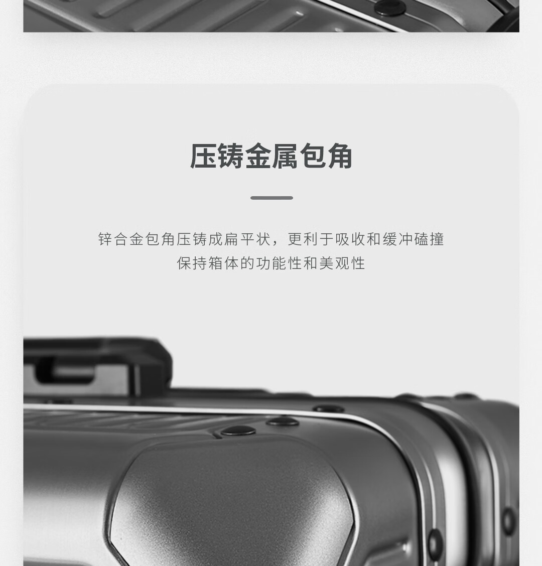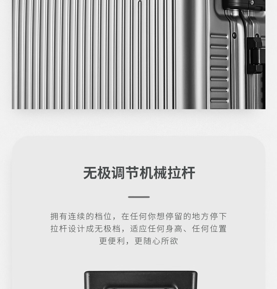Echolac aluminum-magnesium alloy stepless trolley suitcase, full metal shell, high-end suitcase, anti-collision and impact-resistant CTA148, dark gray, aluminum-magnesium alloy, 20 inches