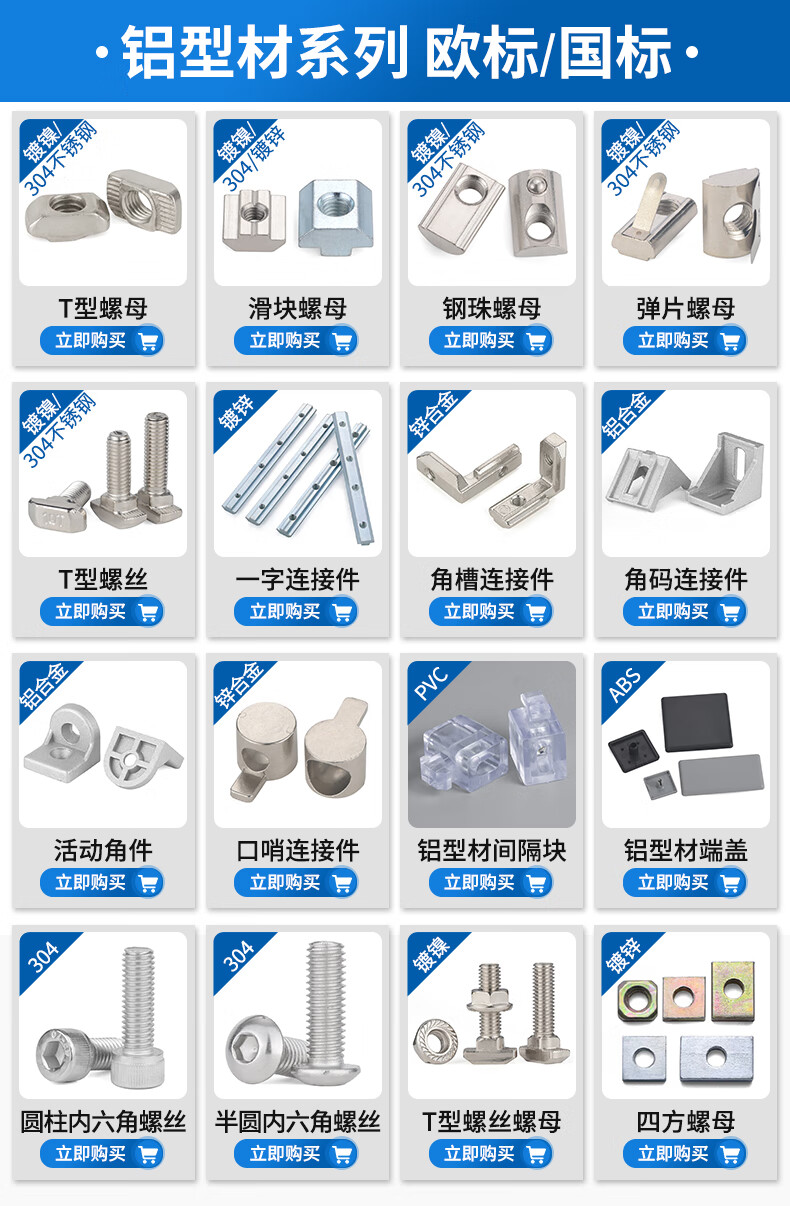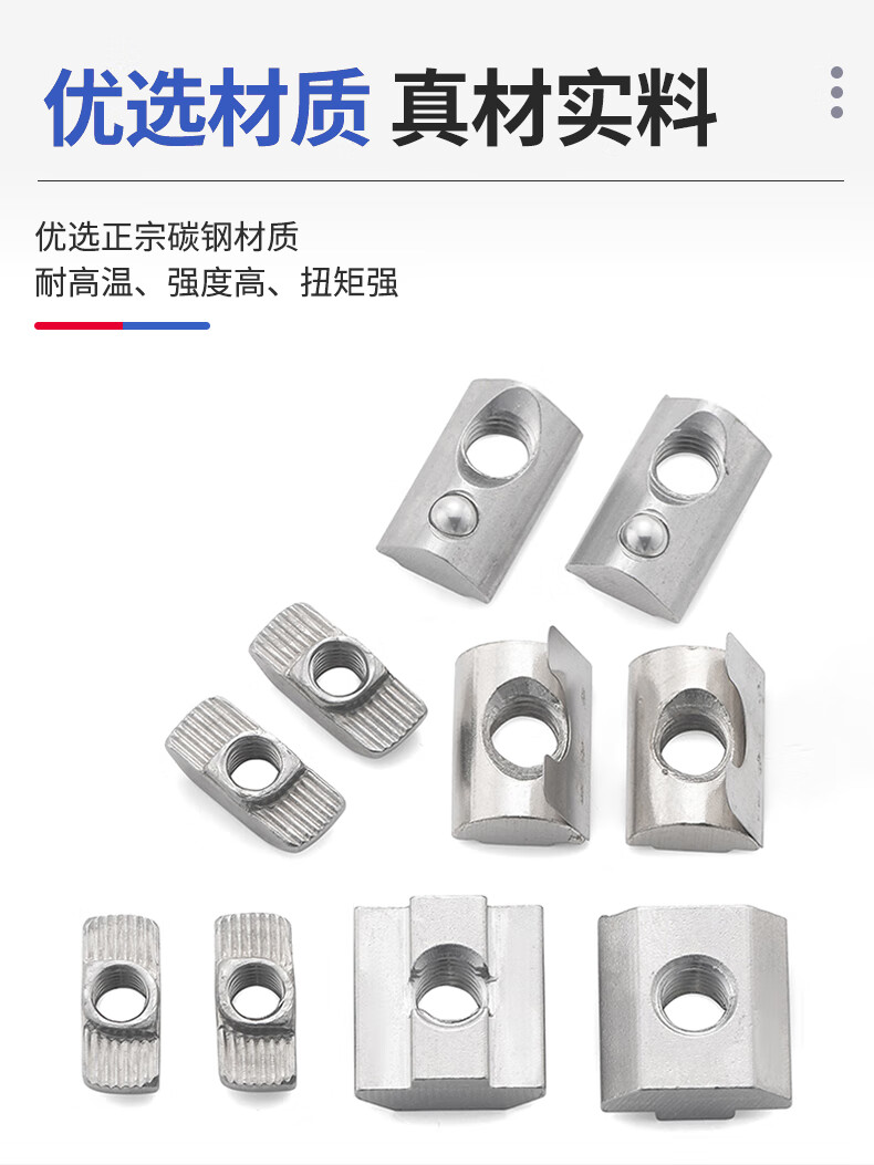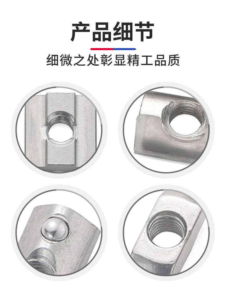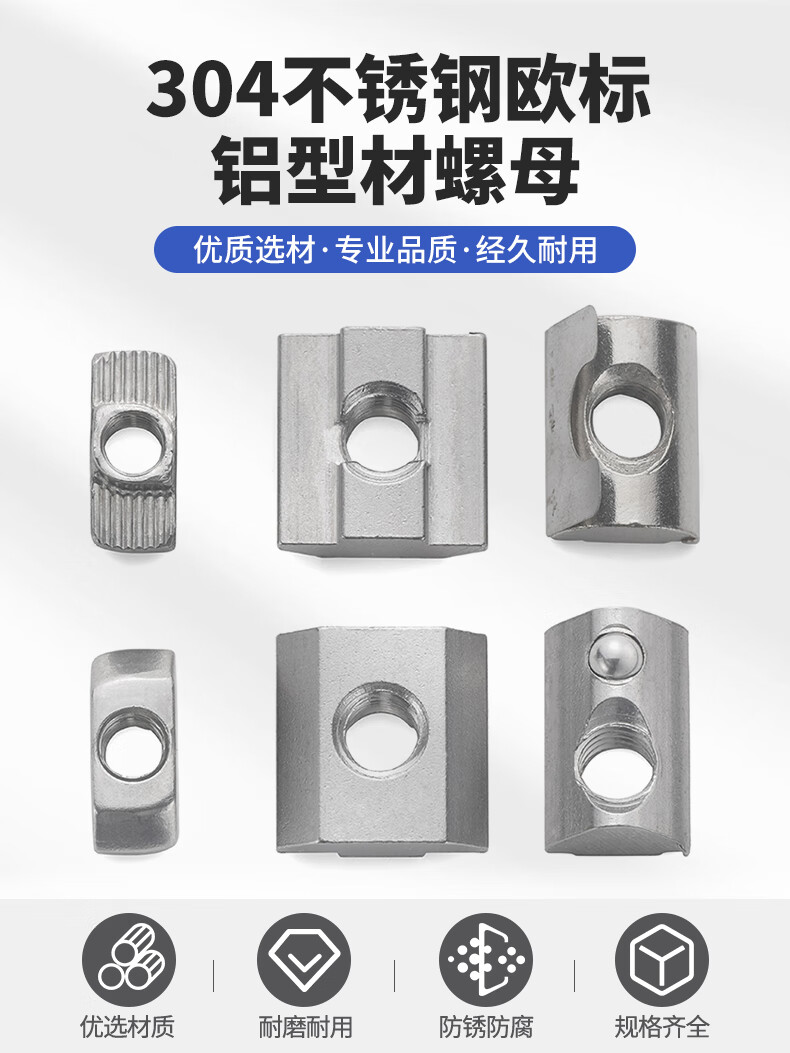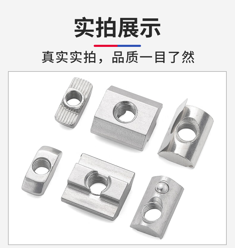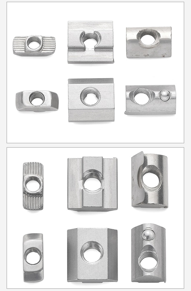 JINGGONG European standard T-type slider marble elastic nut 20/30/40/45 type national standard aluminum profile accessories hammer head boat-shaped T-type nut type 20-M3 (50 pieces) nickel-plated