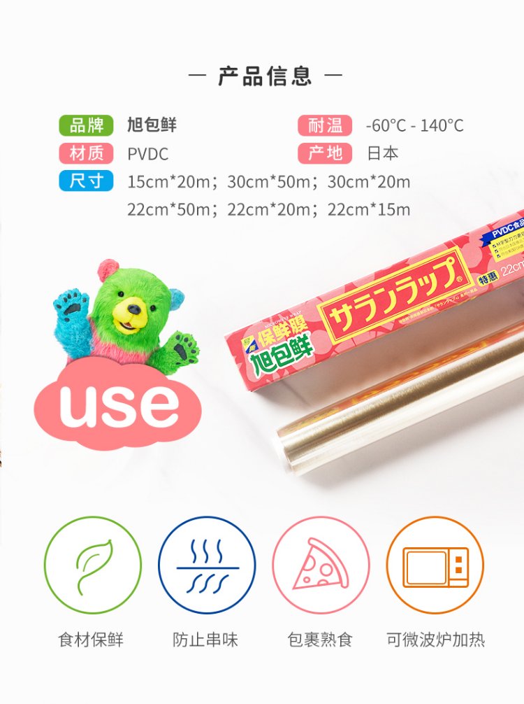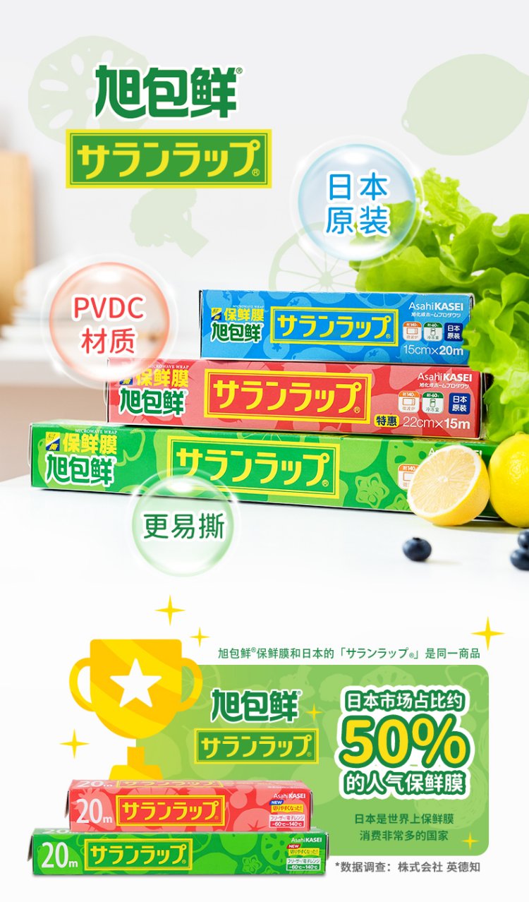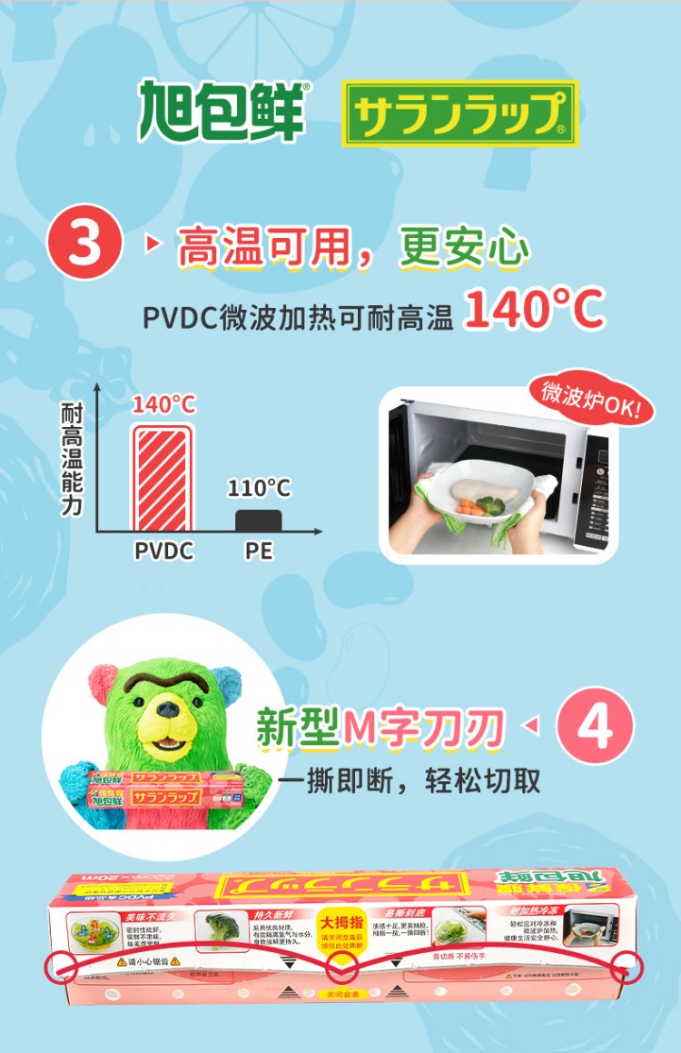 Asahi Baoxian imported from Japan PVDC microwaveable heating cling film 30cm 20m*3 even package high temperature resistant refrigerator