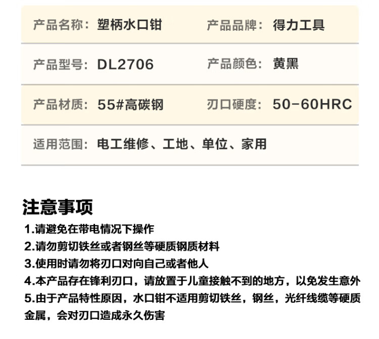 Deli non-slip water mouth pliers water mouth scissors electronic scissors plastic diagonal pliers electrician's scissors 6-inch wire cutting pliers emergency