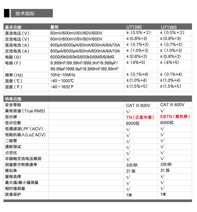 Ulide industrial products multi-function UT139S multimeter high-precision digital display household ammeter UT139S