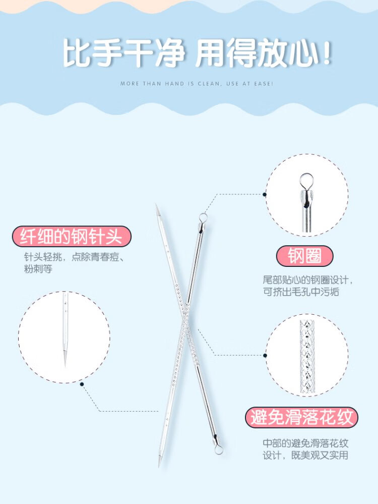 Ukiss Double-headed Acne Needle (Blackhead Acne Needle, Acne Beauty Needle, Pimple Picking, Pimple Squeezing, Pimple Clamp Cell Clip)