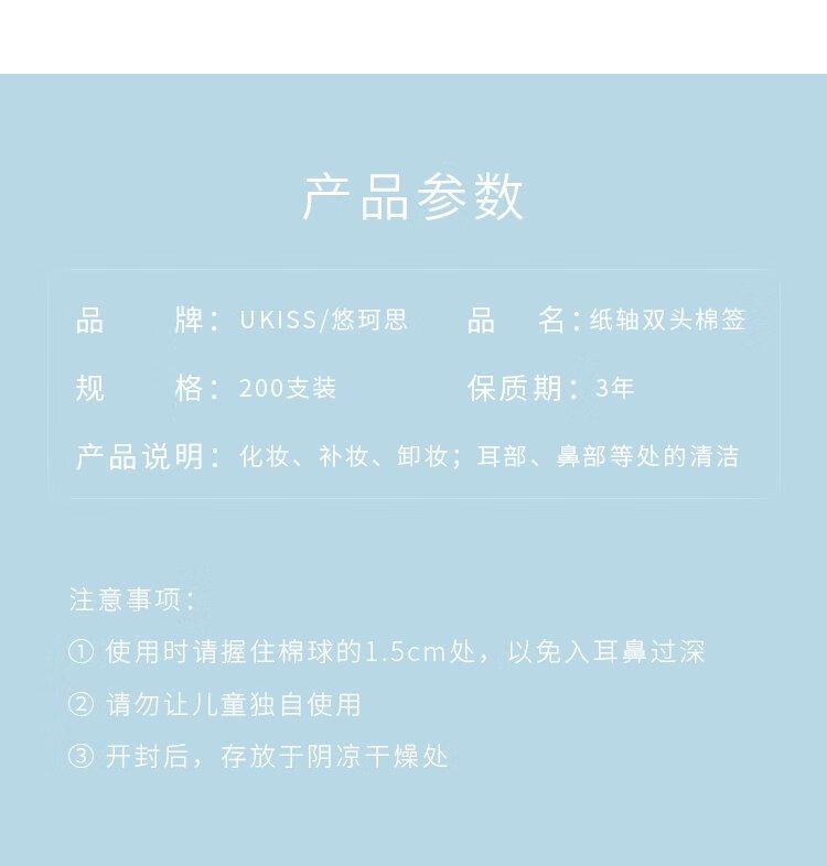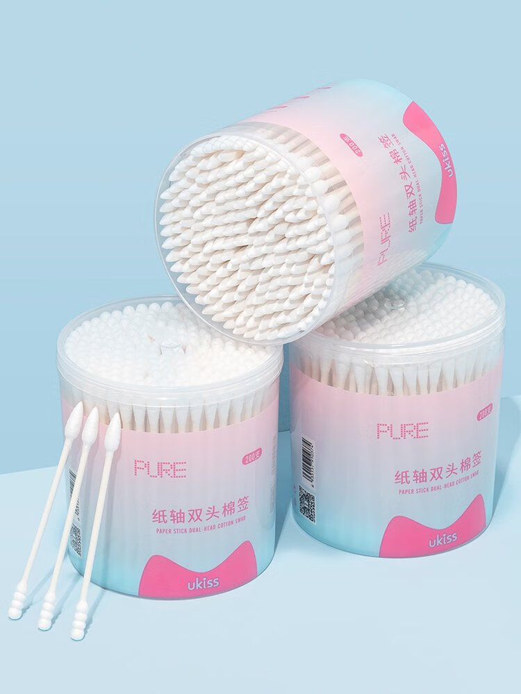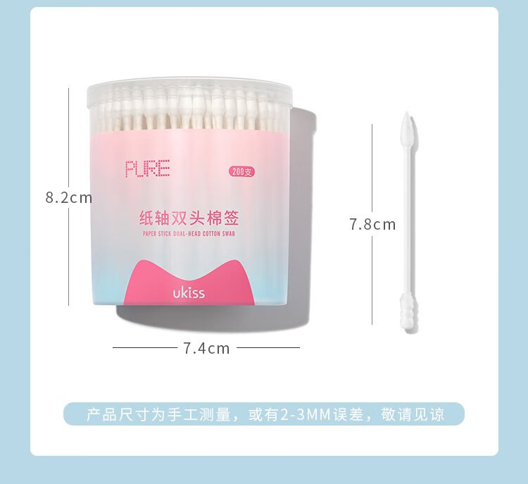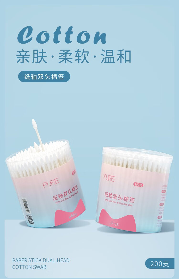 Ukiss (ukiss) paper shaft double-headed cotton swabs 200 pieces (ear-picking makeup tip spiral oval head disposable cleaning stick for infants and young children