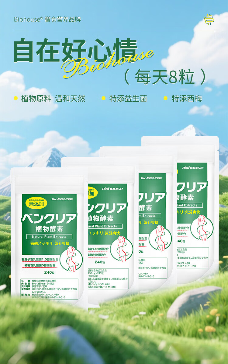 BioHouse 4 bags of Japanese enzymes, pu enzyme, bowel cleansing, fruit and vegetable enzymes, plant enzyme tablets