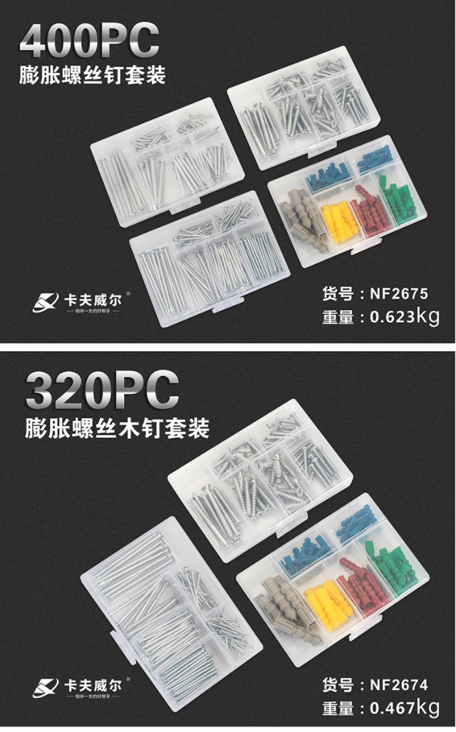 Kraftwell high-strength nylon expansion screw expansion tube expansion bolt self-tapping screw wood screw set 135PC NF2670