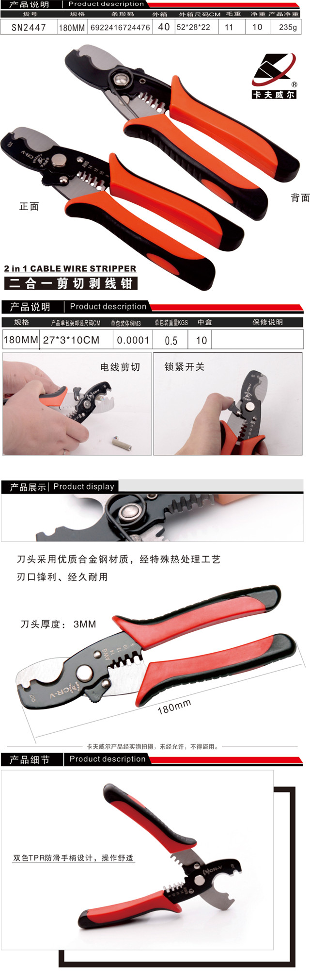 Kraftwell 2-in-1 wire stripper and wire cutter electrician tool SN2447
