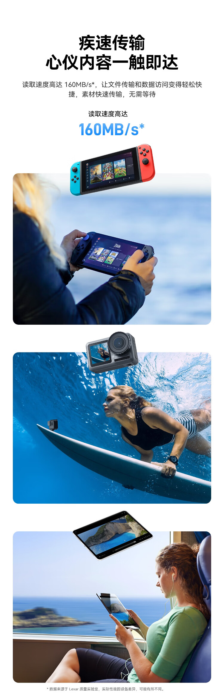 Lexar TF card 256G DJI action4 memory card 512G drone DJI pocket3 memory card 256G high speed 160MB/s DJI equipment suitable for high-speed storage