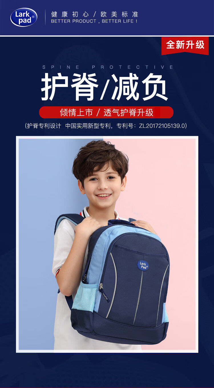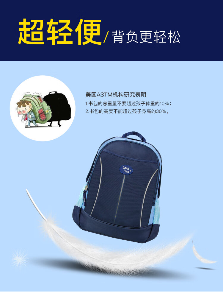 Lark Pad primary school student schoolbag boys and girls grade 3-6 middle school students ultra-light weight-reducing shoulder children's schoolbag 128 Duke Blue