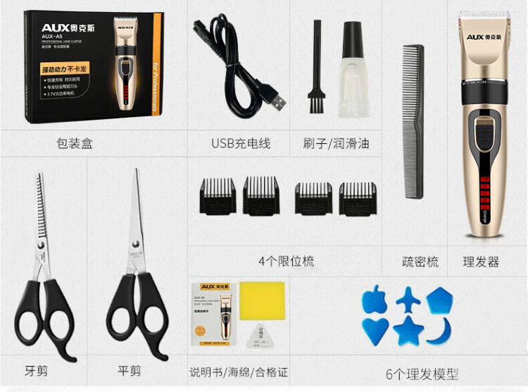 Oaks (AUX) shaving hair clipper electric clipper adult electric clipper baby electric hair clipper household children's shaver hair clipper scissors haircut tool set universal model for the whole family including haircut gift package
