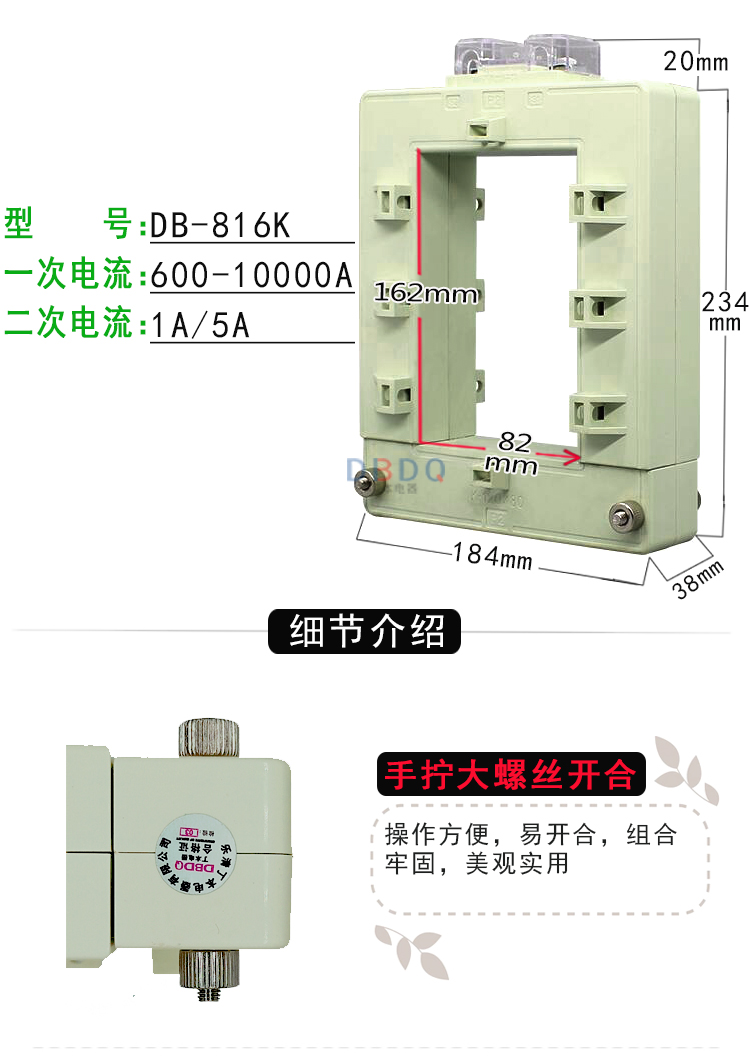 Copper bar opening and closing current transformer open type BH0.66 open square AC high-precision measurement 0.2 DB-46K zero point 5 600A/5A