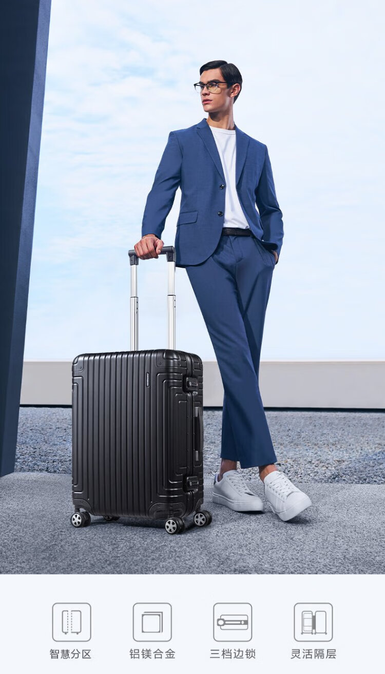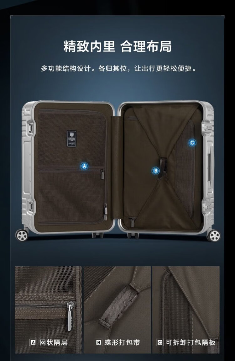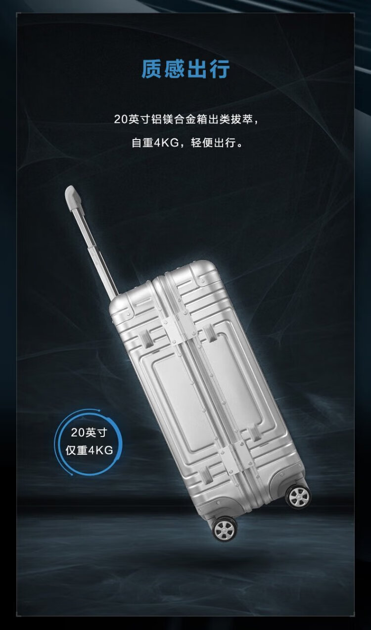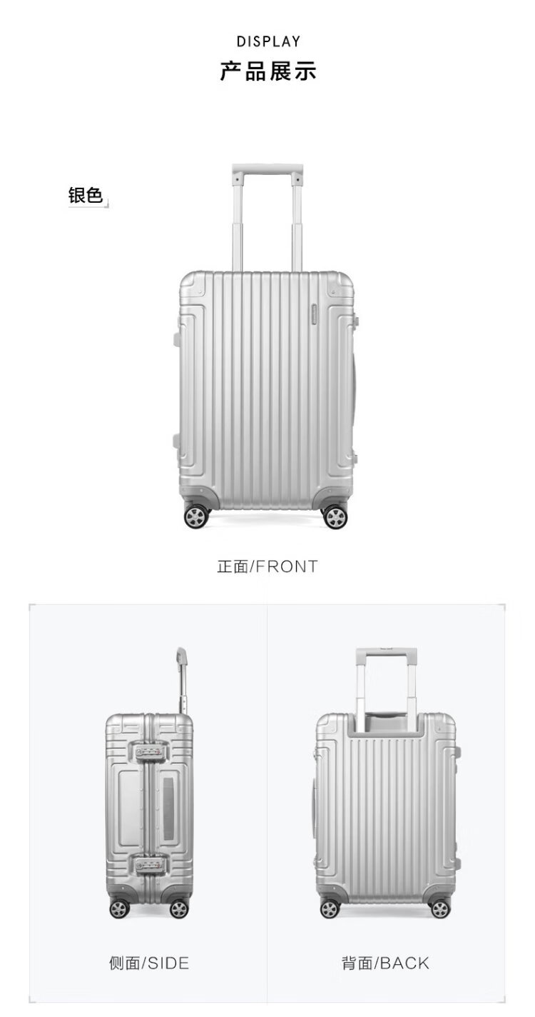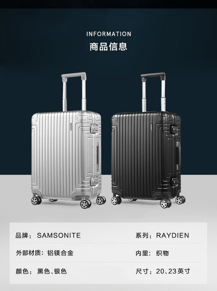 Samsonite suitcase 20-inch trolley case aluminum-magnesium alloy suitcase high-end password boarding case silver DB3