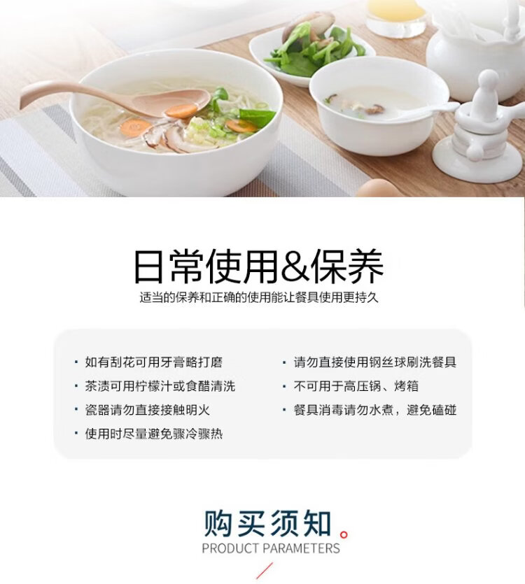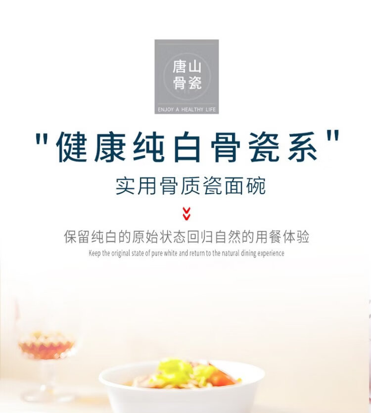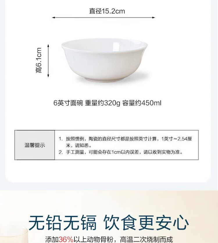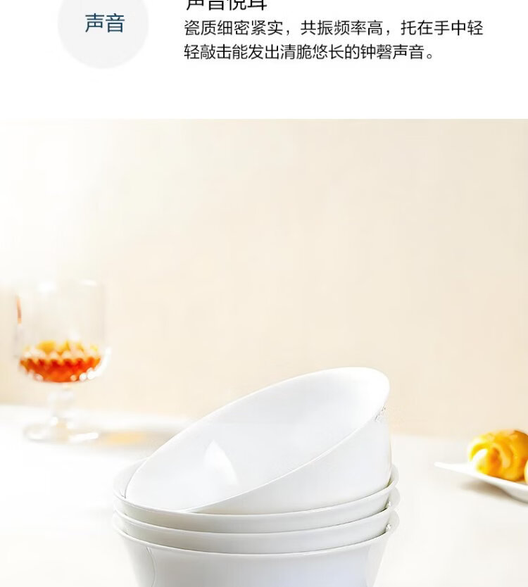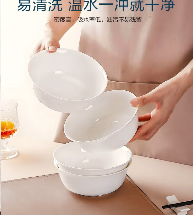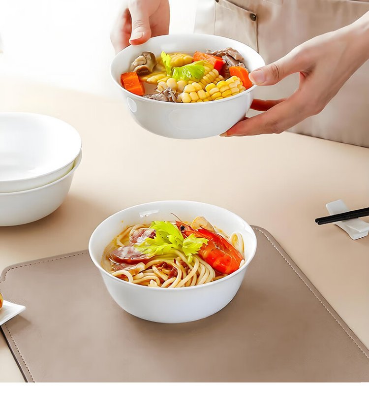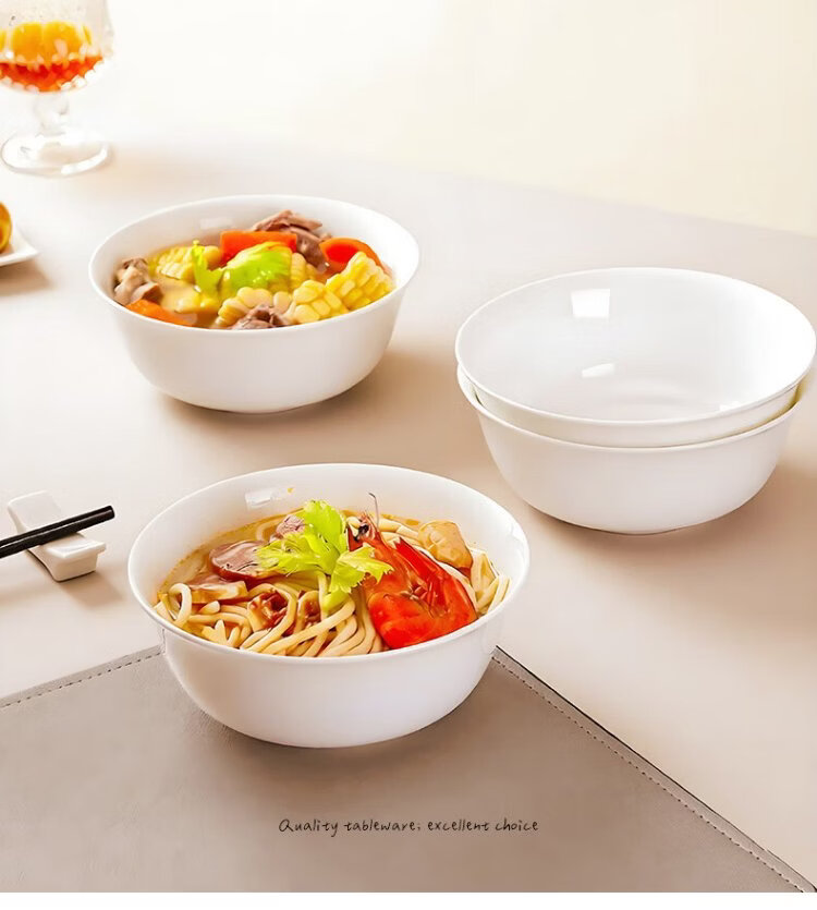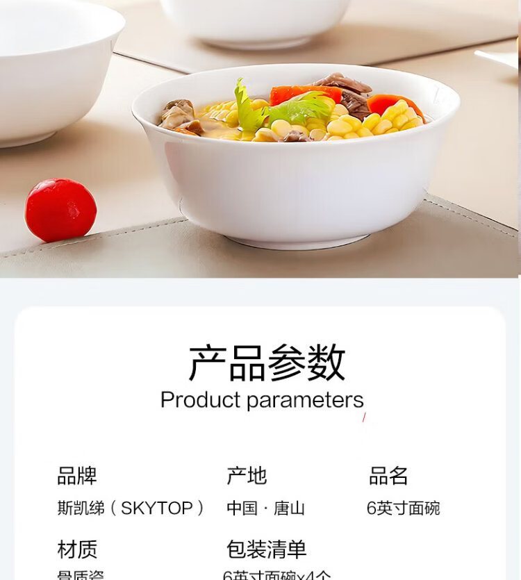 Sky Top ceramic noodle bowl, bone china soup bowl, rice bowl, household tableware, pure white 6-inch 4-piece set