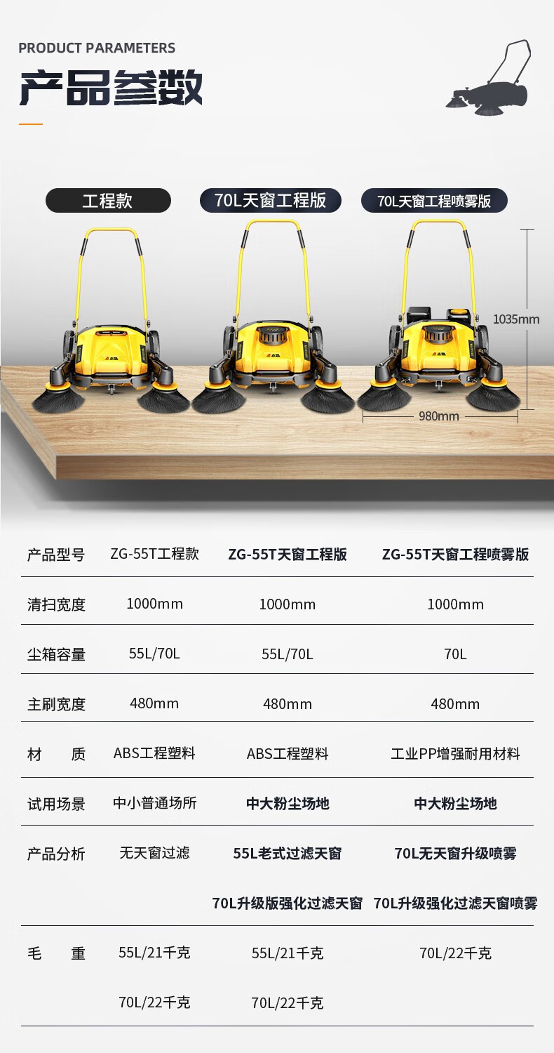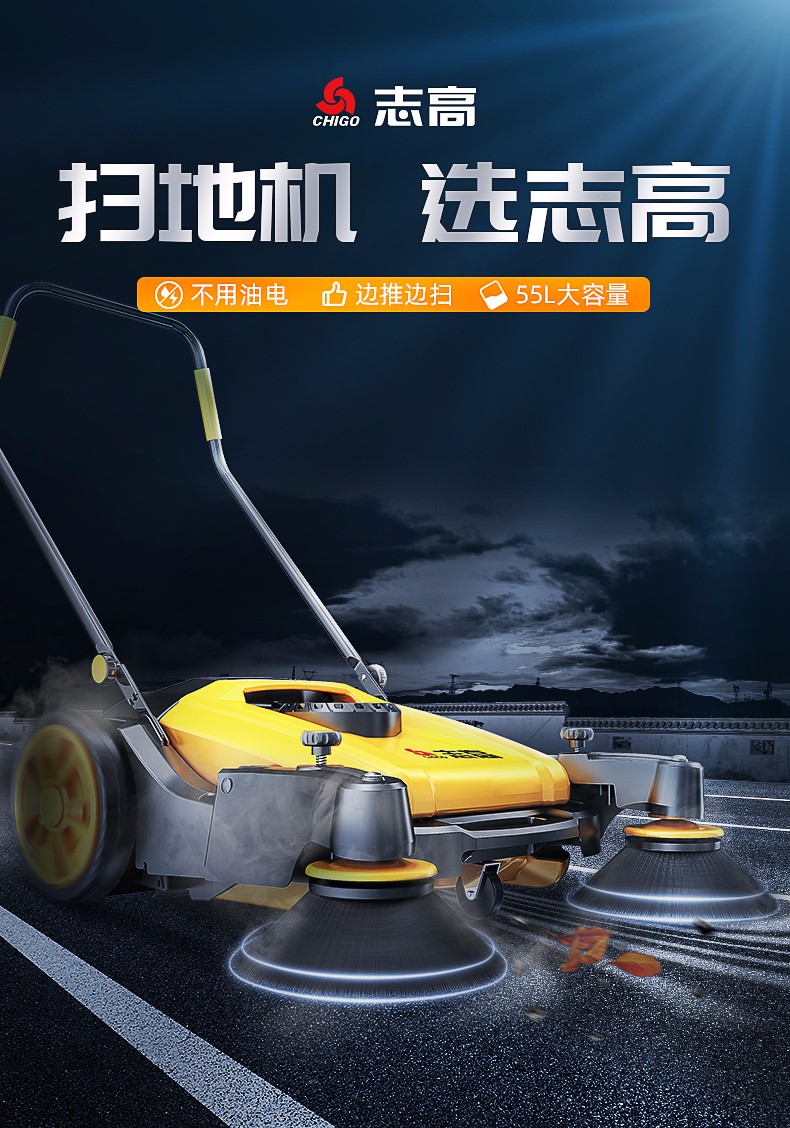 CHIGO vacuum cleaner hand push industrial sweeper factory workshop warehouse sweeper sanitation road garbage cleaning truck