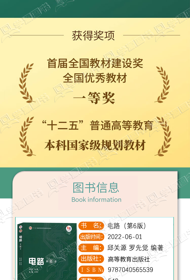 Genuine free shipping Xi'an Jiaotong University Circuits Sixth Edition Qiu Guanyuan 6th Edition Higher Education Press Electronics and Electrical Information Major Fifth Edition Upgraded Postgraduate Entrance Exam Textbook Circuits Qiu Guanyuan (Sixth Edition)