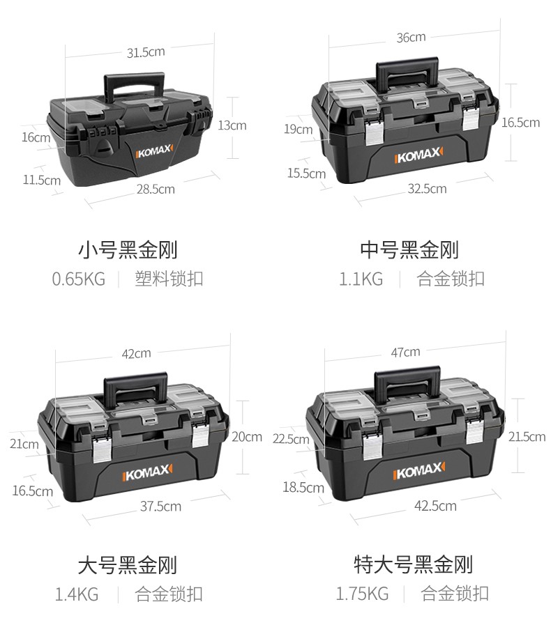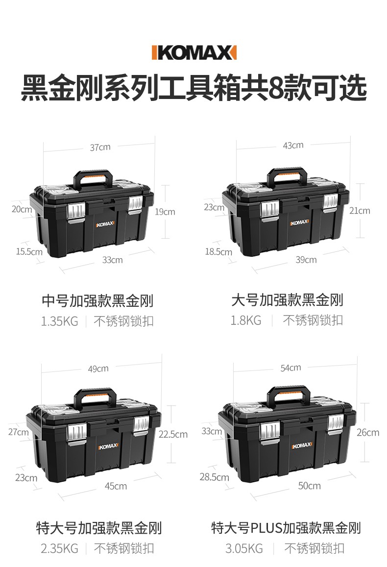 Komax Tool Box Empty Box Home Car Repair Portable Storage Box Parts Box Portable Large Hardware Tool Storage Box Large Black King Kong Tool Box