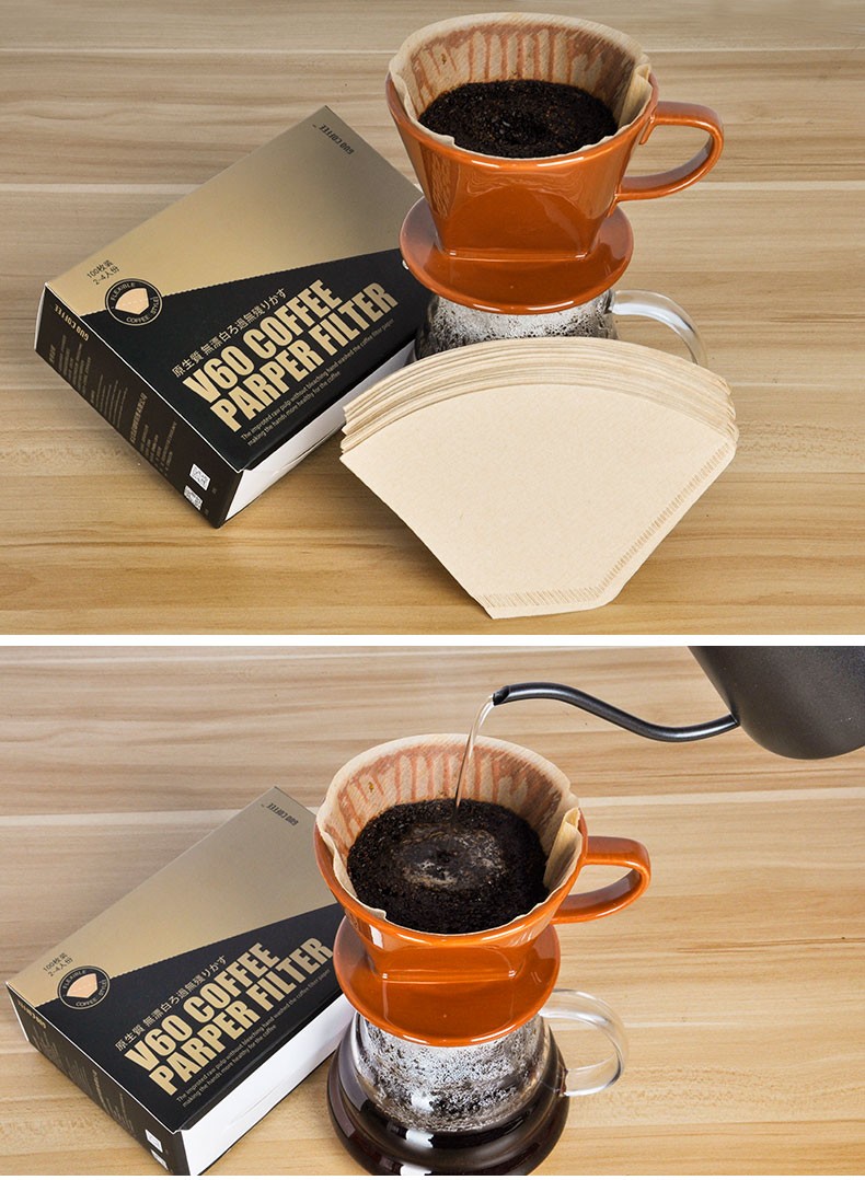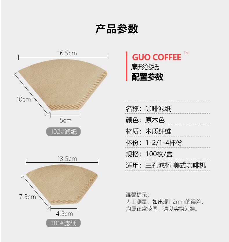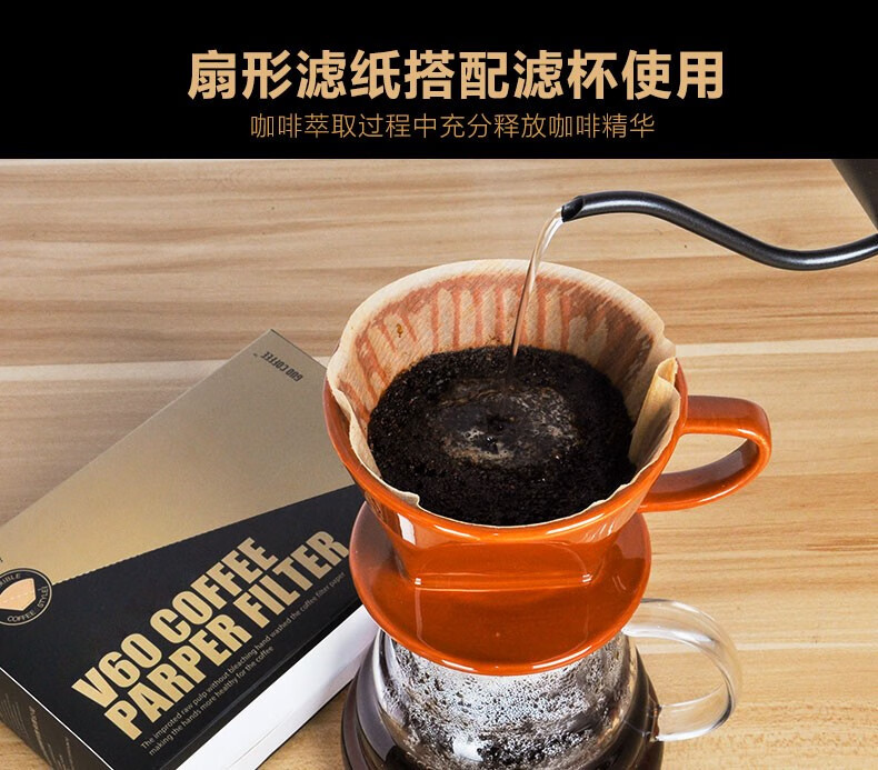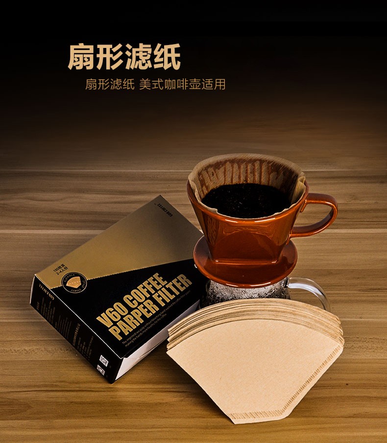 Boelter American coffee pot drip coffee machine with original color trapezoidal conical coffee filter paper thickened fan filter paper 102# fan filter paper 100 pieces in box
