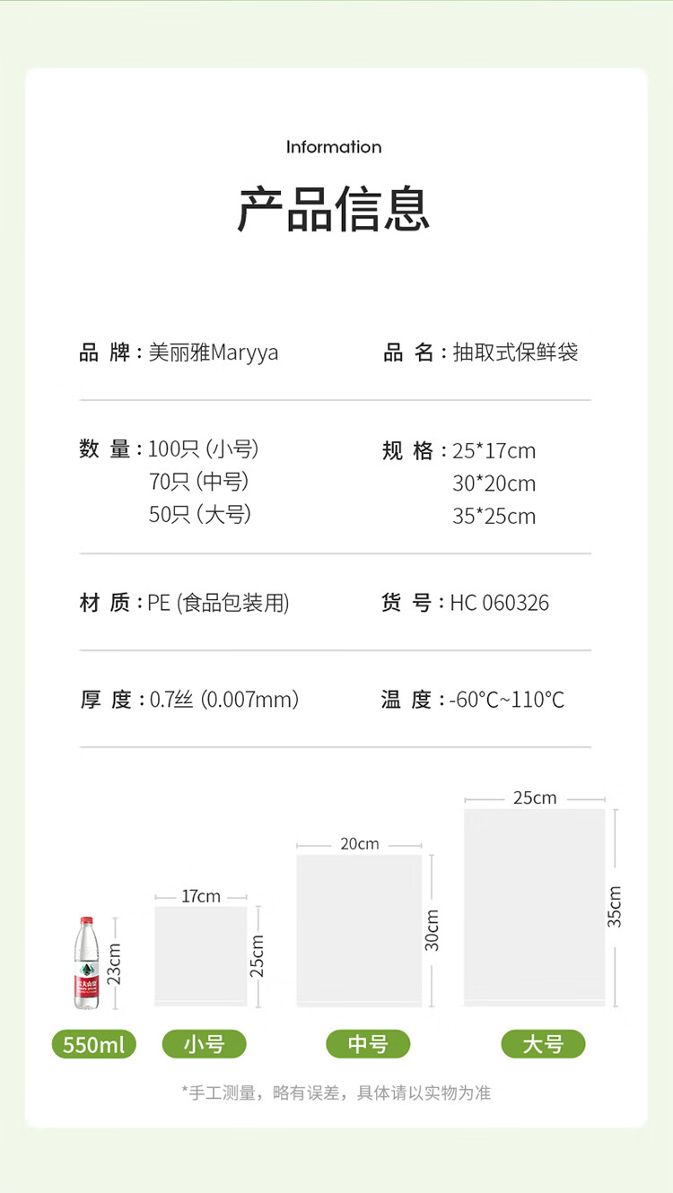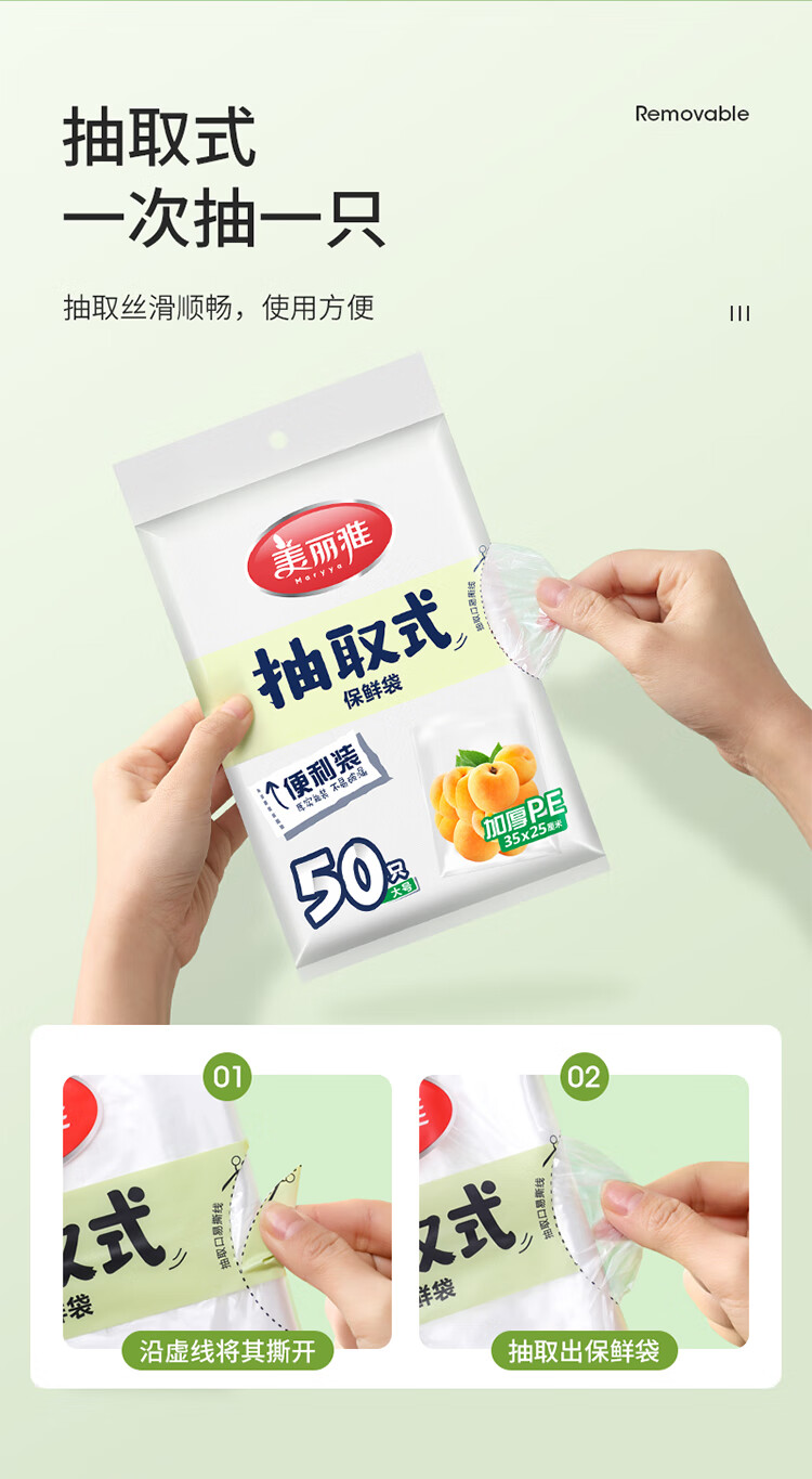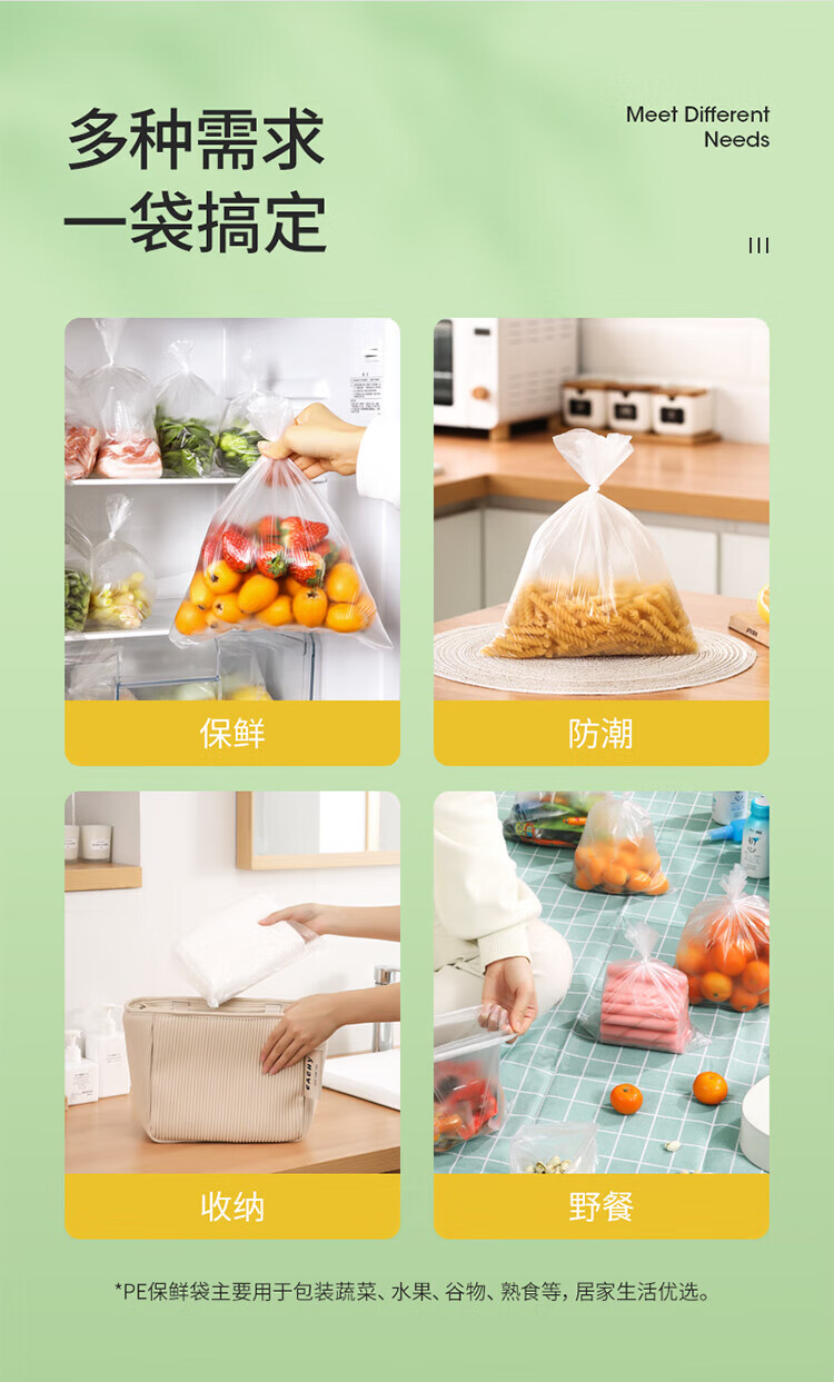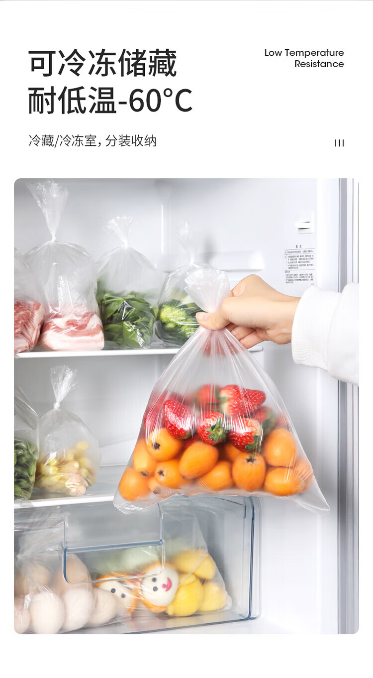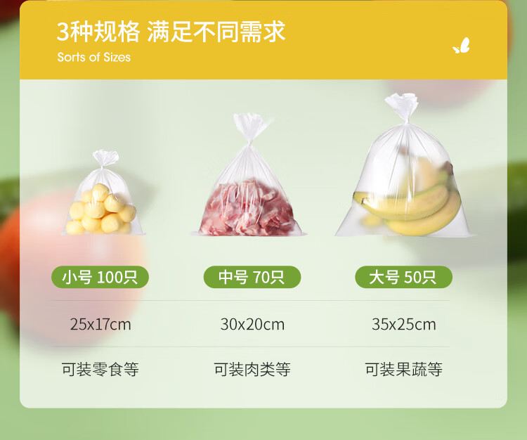 Meiya Disposable Fresh-keeping Bags Food Grade Combination Pack 3-in-1, 220 pieces in total, large, medium and small thickened bags