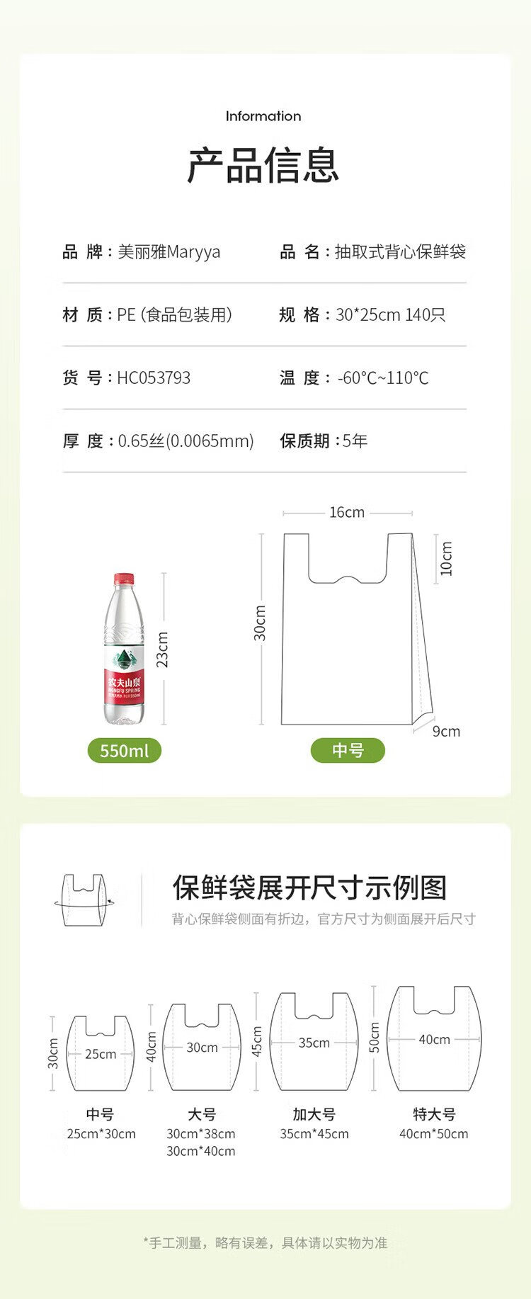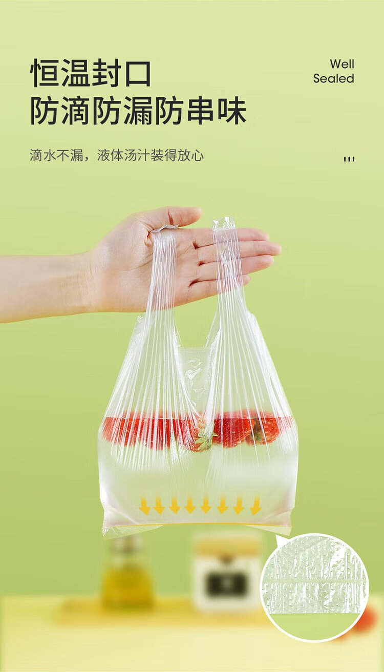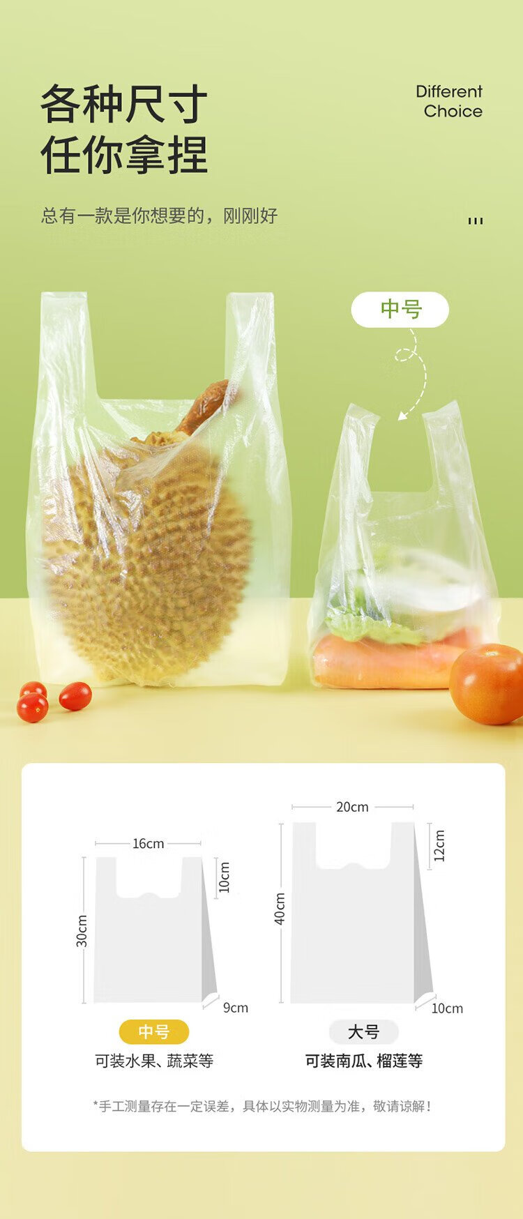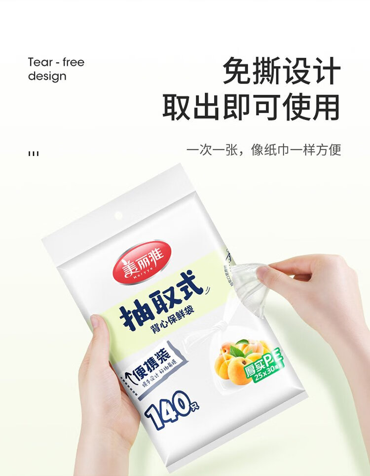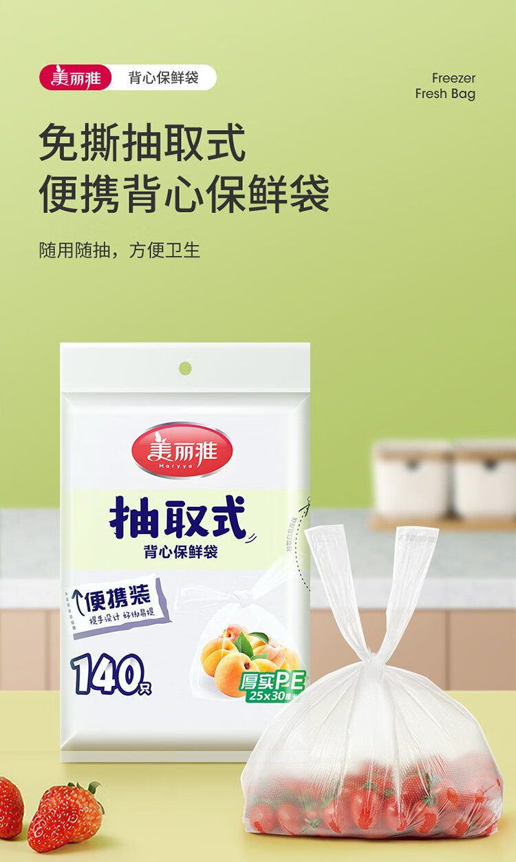 Meiya disposable fresh-keeping bag food grade vest 140 pieces medium size 25cm*30cm plastic bag thickened refrigerated