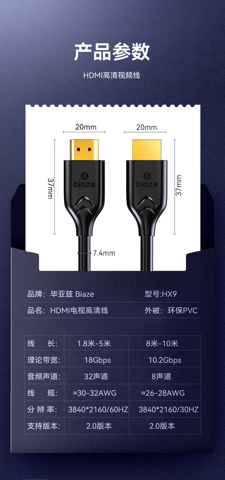 Biaz HDMI cable version 2.0 10 meters 2k*4k digital high-definition cable 3D video cable set-top box game console laptop TV projector display cable thick