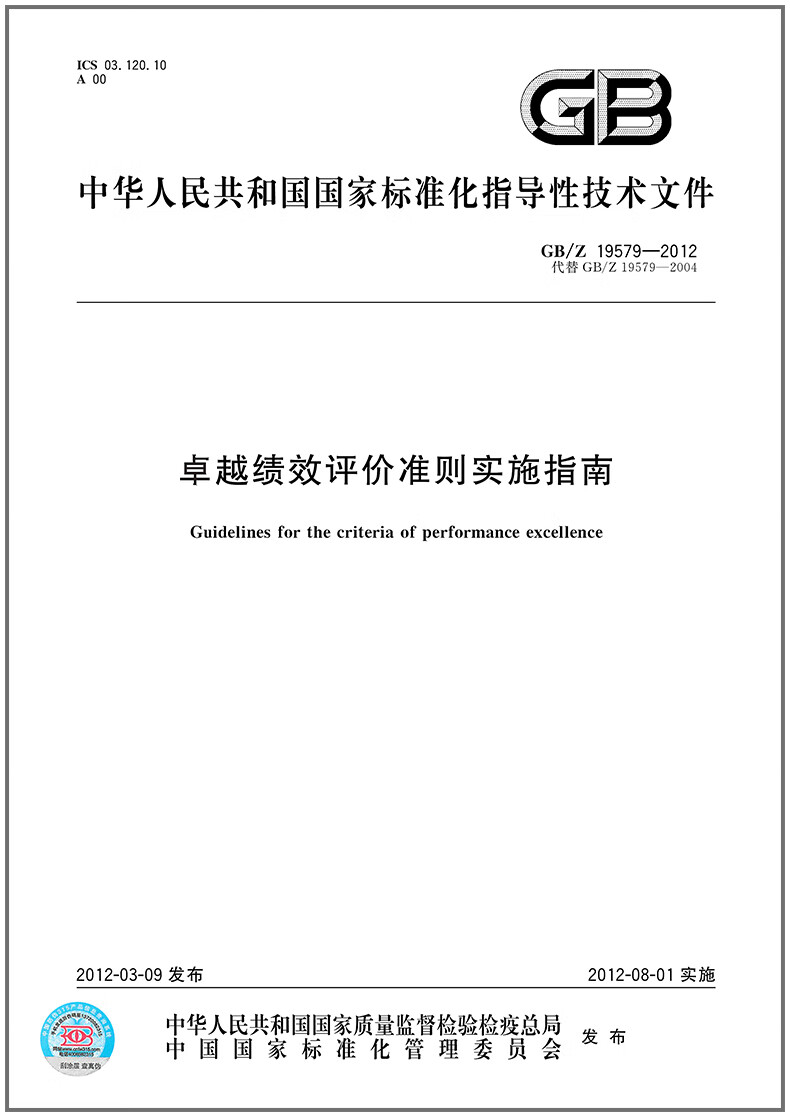 Set of 4 GB/T 19580-2012 Excellent Performance Evaluation Criteria + Excellent Performance Evaluation Criteria Practice + GB/Z 19579-2012 Excellent Performance Evaluation Criteria Implementation Guide + Excellent Performance Evaluation Criteria Introduction Revised Edition