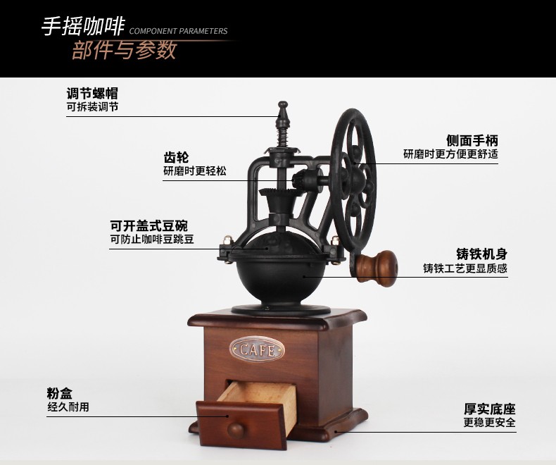 Mongdio hand grinder household coffee bean grinder manual grinder hand grinder coffee machine retro grinder