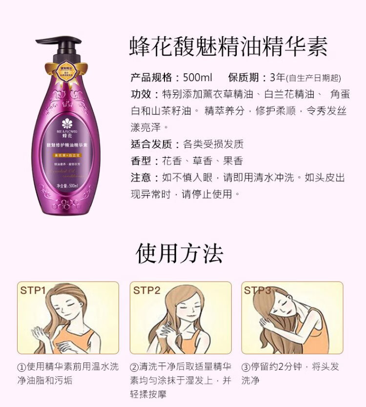 Bee Flower Fragrant Repair Essential Oil Conditioner Moisturizing and Moisturizing Vitality and Brightening Essence for Men and Women 500ml