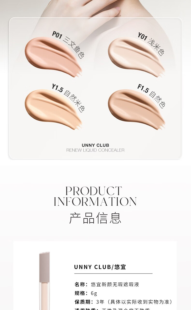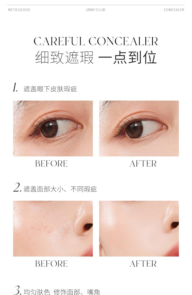 Youyi (unny club) Concealer Concealer Brightening Liquid Contouring Highlight Covers Spots Covers Dark Circles Covers Acne Marks New Year's Gift for Men and Women #2 Dark Natural Color Oily Skin