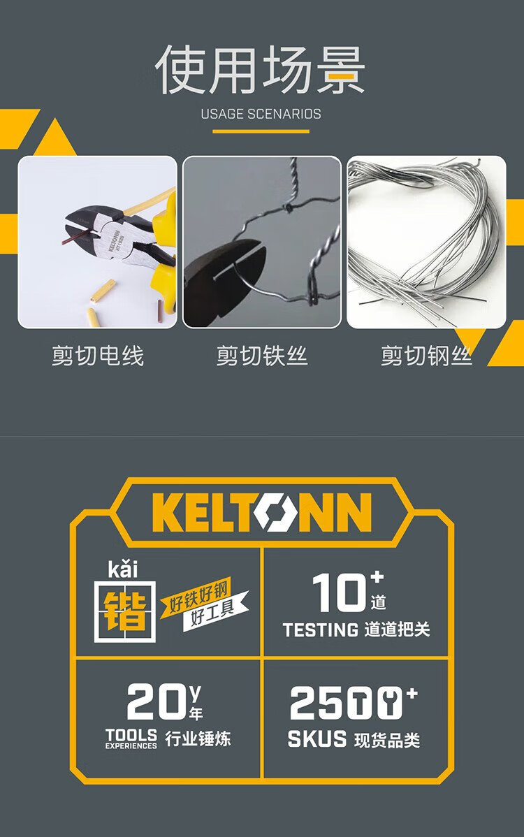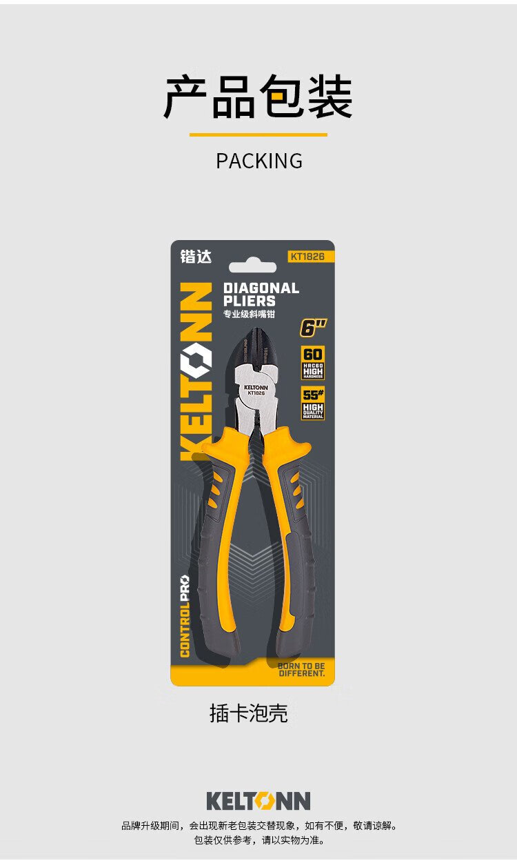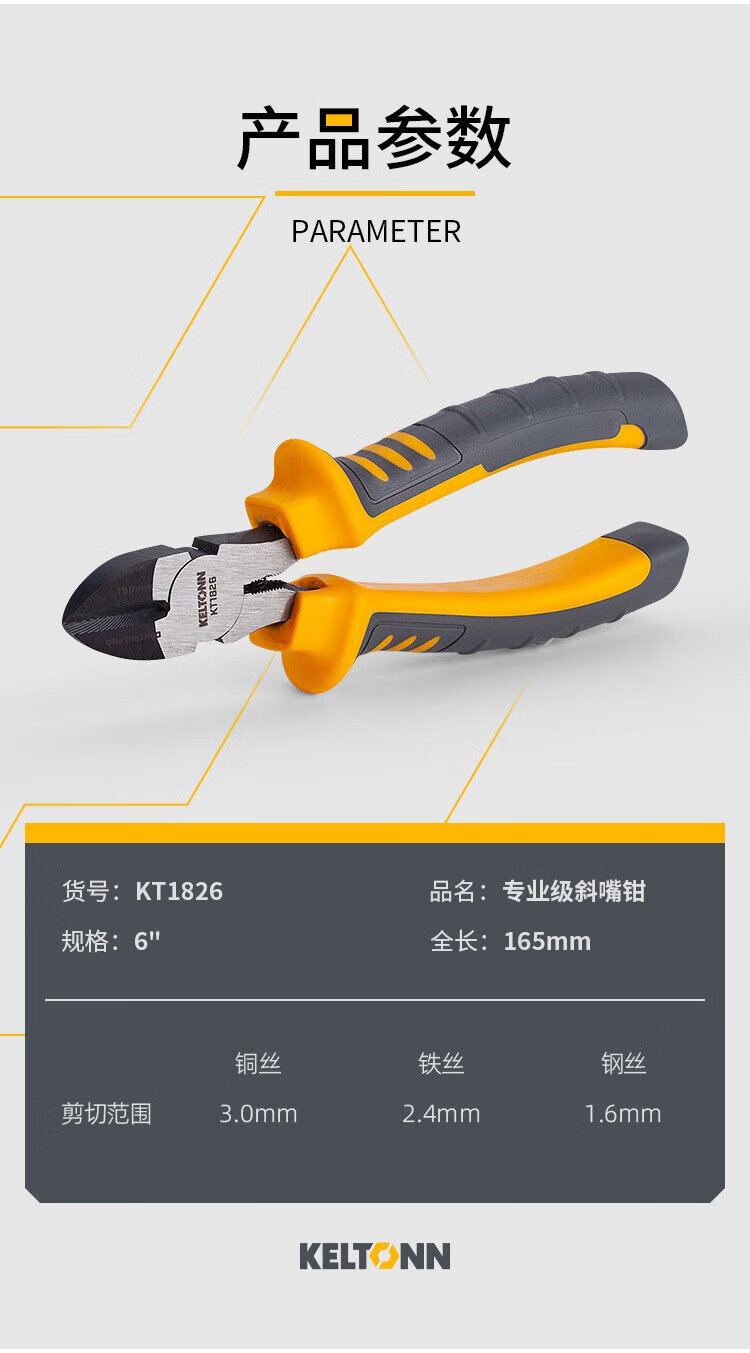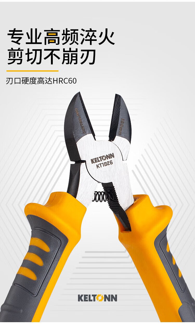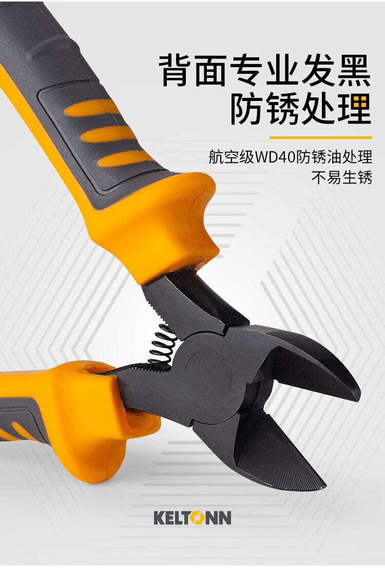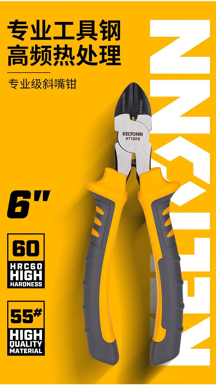 KELTONN pliers, labor-saving diagonal nose pliers, 6-inch diagonal nose pliers, wire trimming pliers, black and rust-proof KT1826