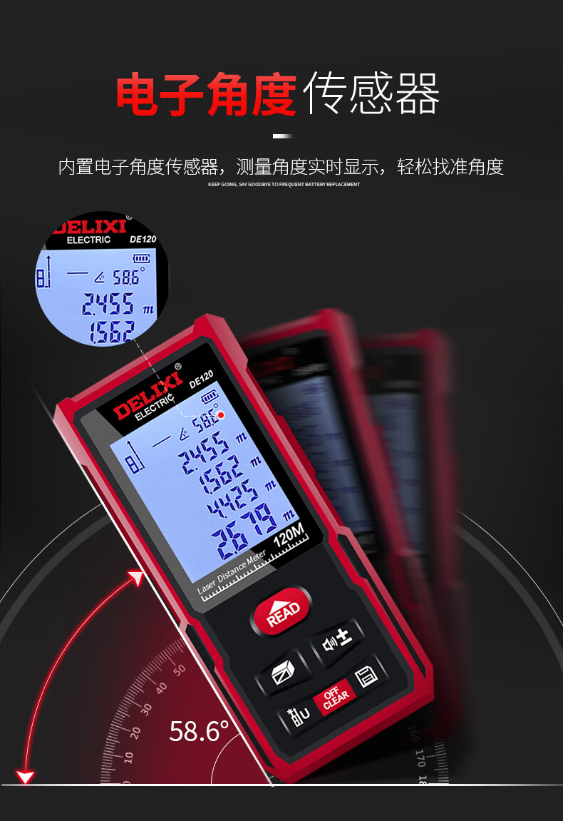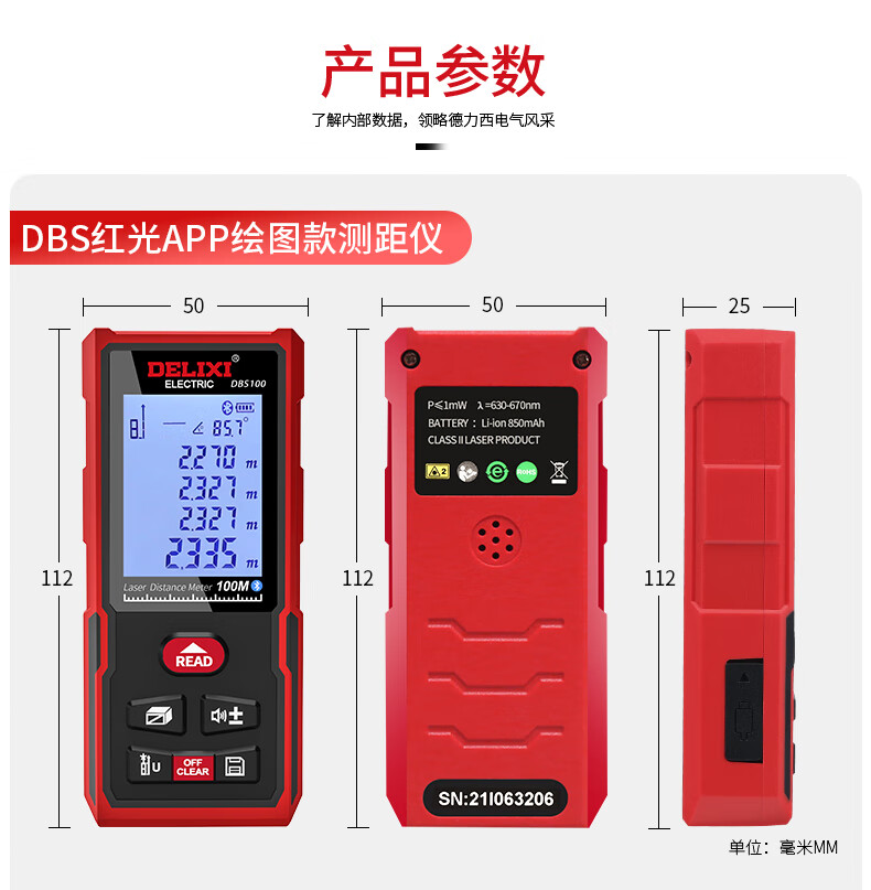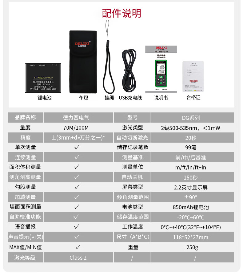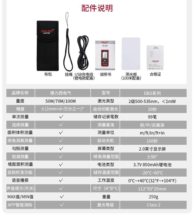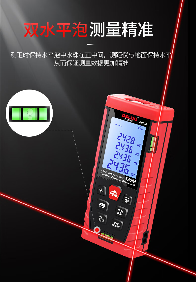 Delixi Electric rechargeable voice laser distance meter infrared electronic level bubble distance meter electronic ruler household room measuring instrument 40 meters single level bubble battery model (cost-effective)