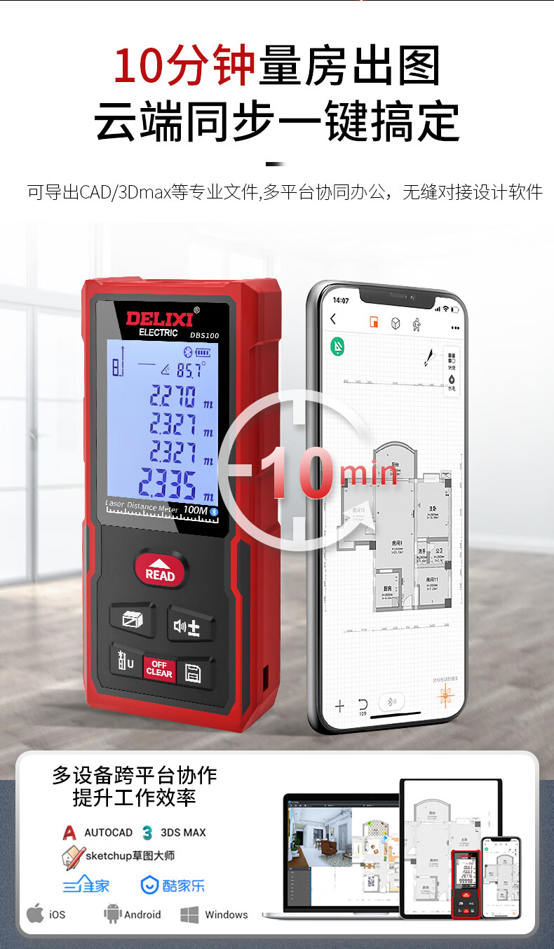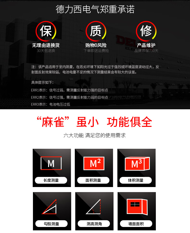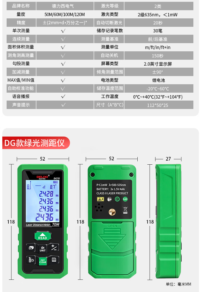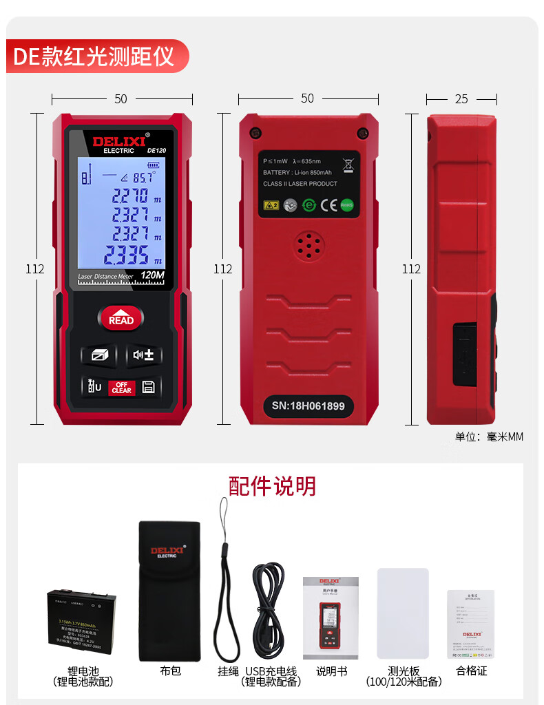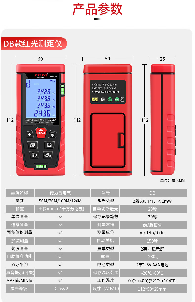 Delixi Electric rechargeable voice laser distance meter infrared electronic level bubble distance meter electronic ruler household room measuring instrument 40 meters single level bubble battery model (cost-effective)