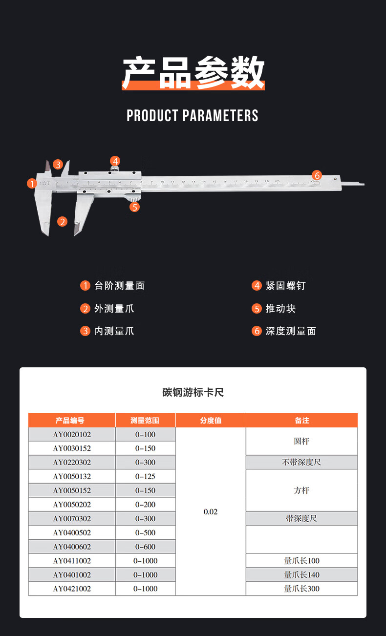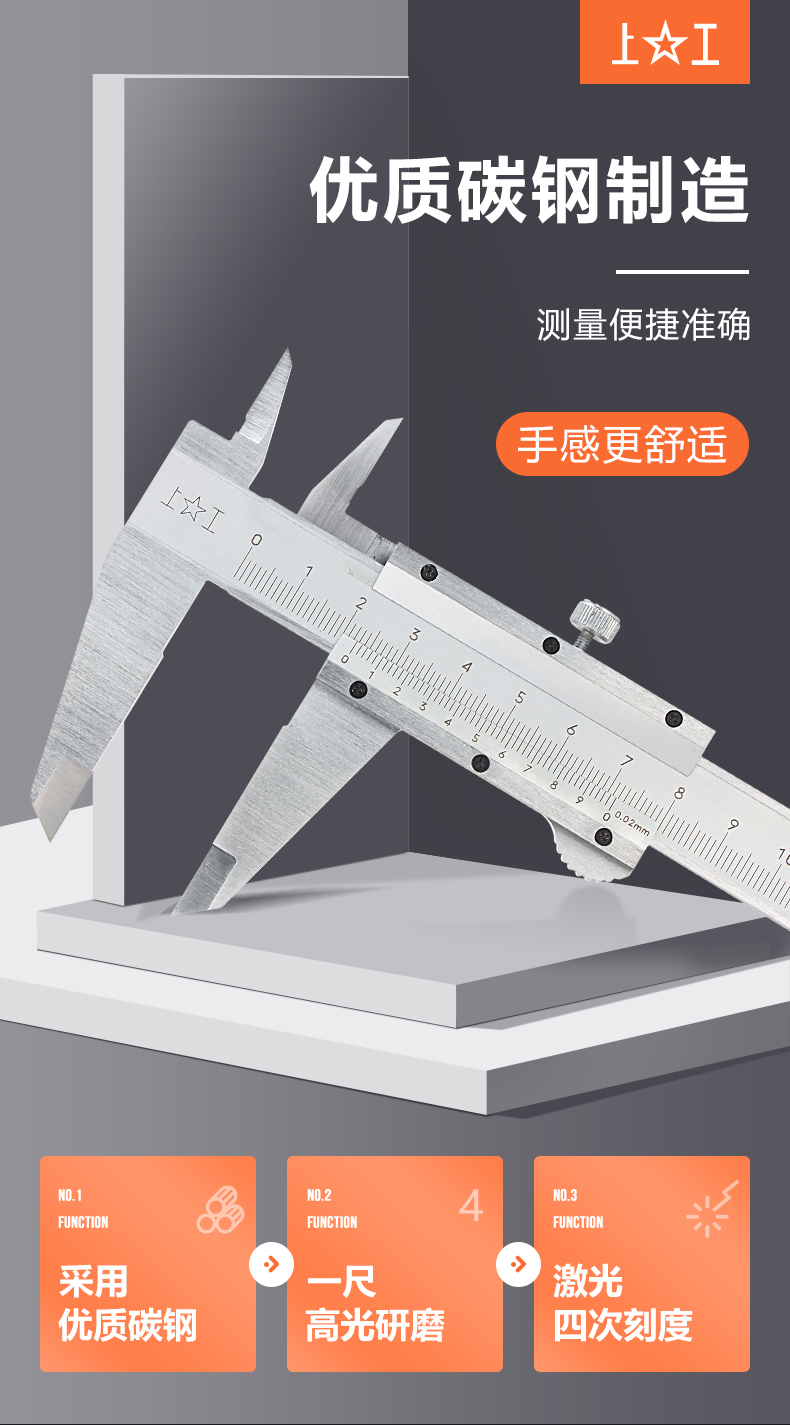 Shanggong four-purpose vernier caliper 0-200mm graduation value 0.02 oil mechanical vernier caliper marking line card carbon steel oil level caliper high precision
