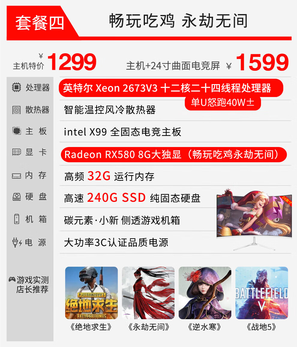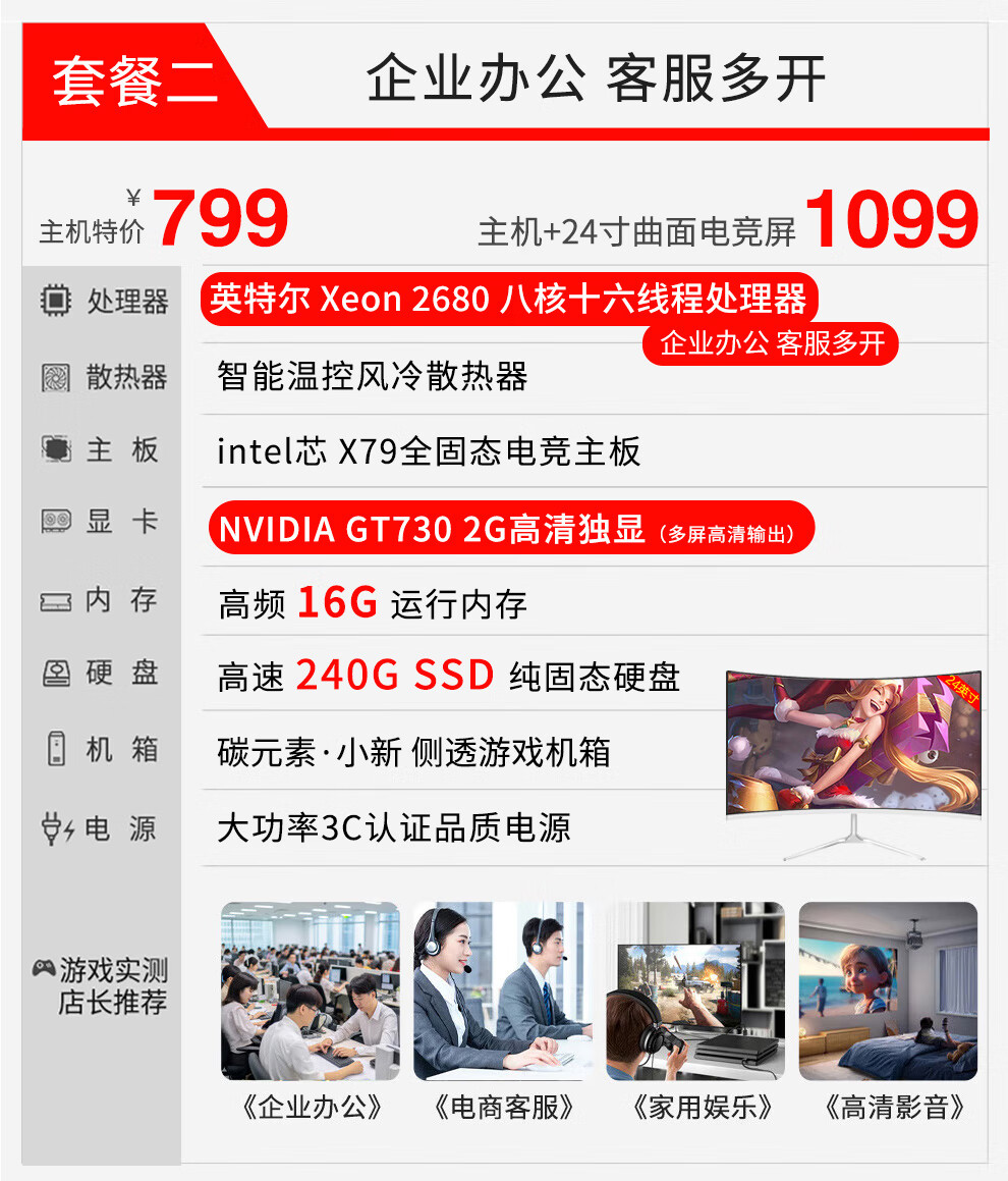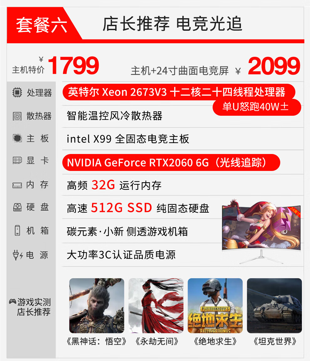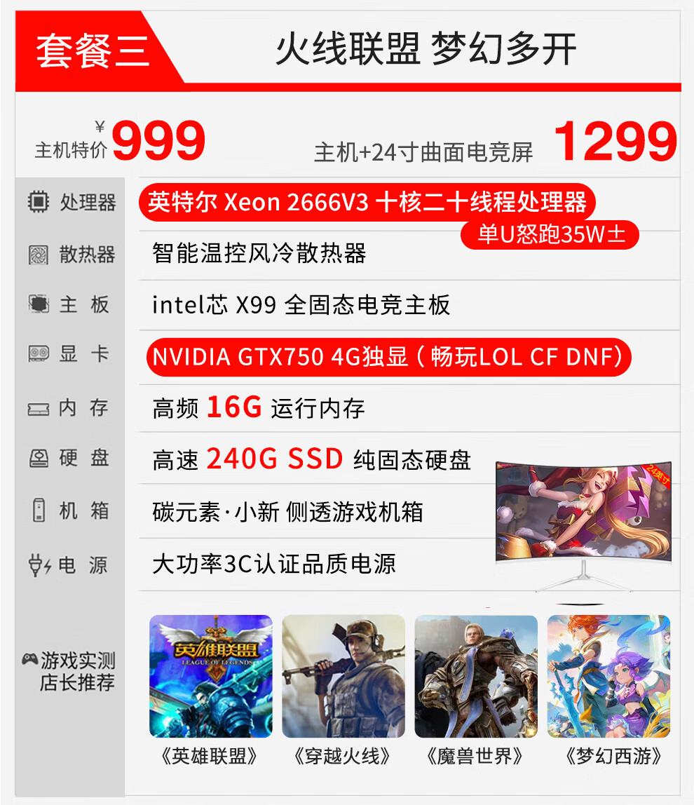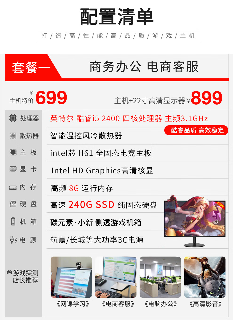 Intel 12-core RTX3060 12G gaming chicken office complete set of host DIY assembly second-hand desktop computer three ten cores and twenty threads 16G 4G game independent display host + monitor 99 new