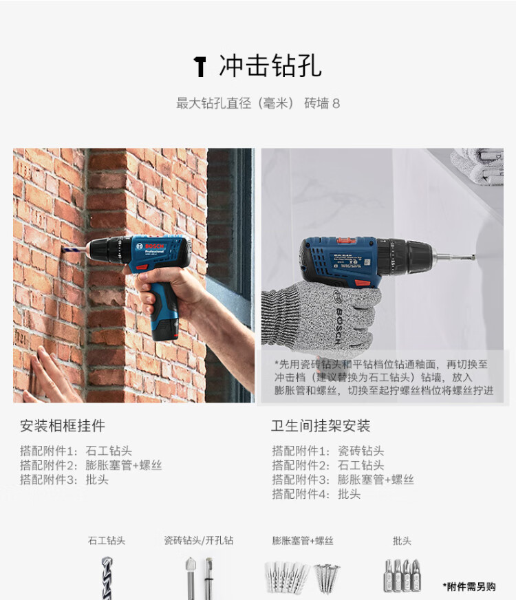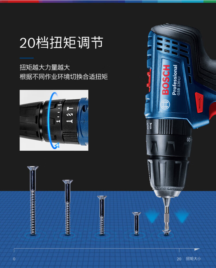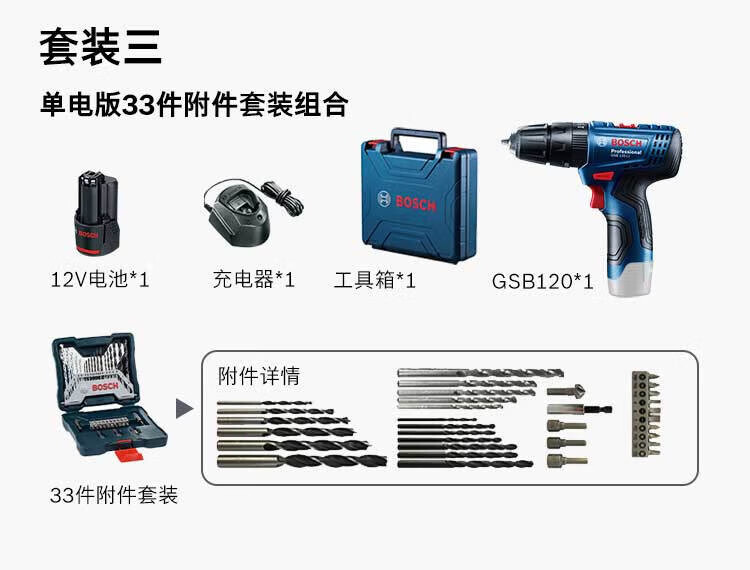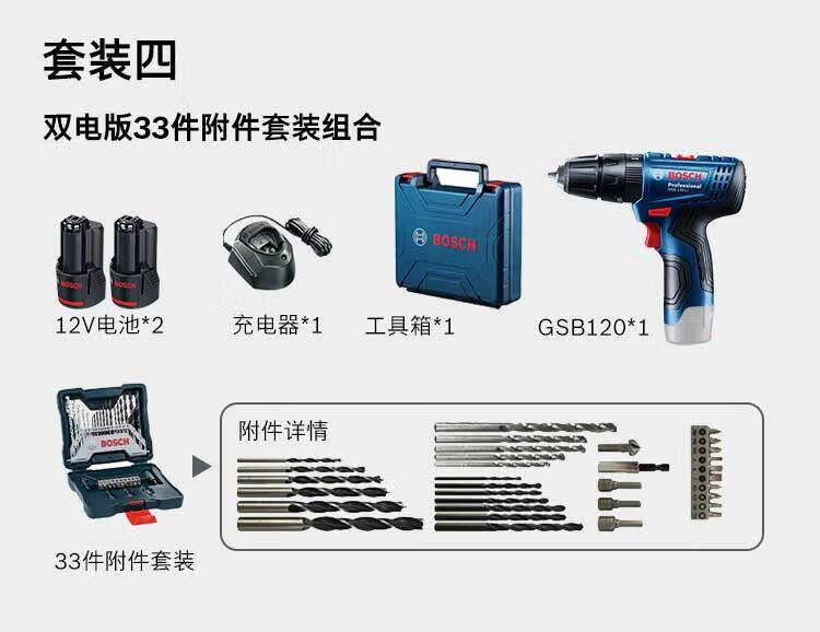 Bosch (BOSCH) 12V lithium impact drill tool box set rechargeable hand drill electric screwdriver GSB120LI 2.0Ah 2 batteries + small black box
