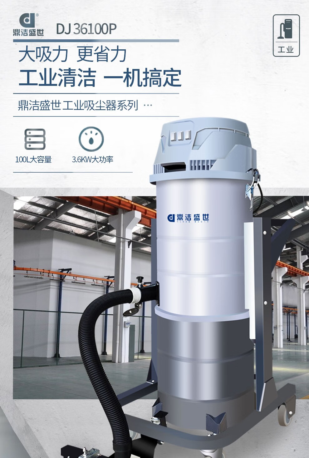 Dingjie Shengshi commercial industrial vacuum cleaner factory workshop high-power dust collector coal ash dust bucket large-capacity mobile vacuum cleaner DJ36100 DJ36100P (with floor scraper)